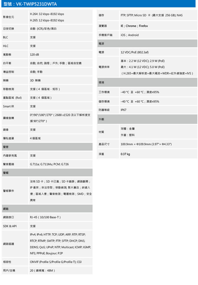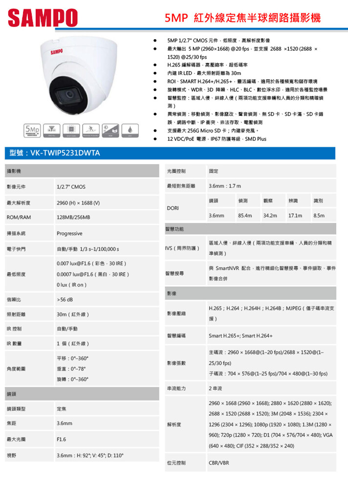 3D專業降噪技術、自動白平衡、自動增益、背光補償