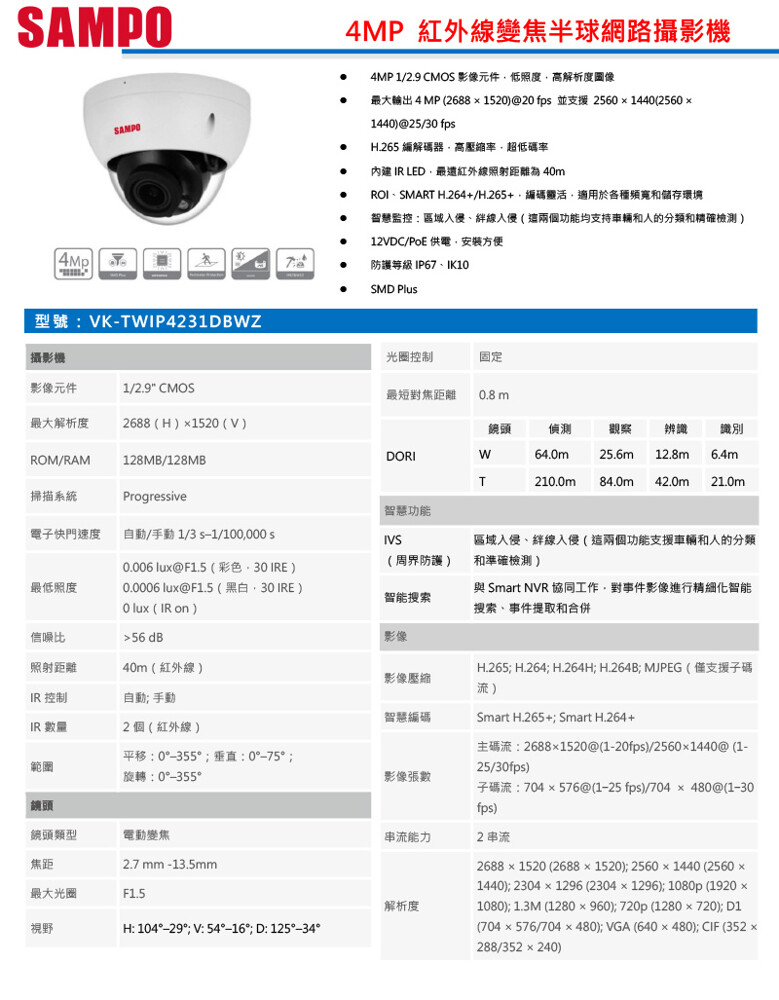 ⚫ ROI、SMART H.264+/H.265+,編碼靈活,適⽤於各種頻寬和儲存環境