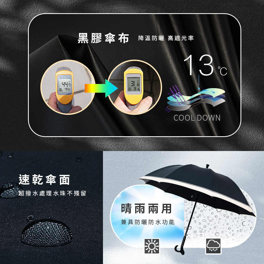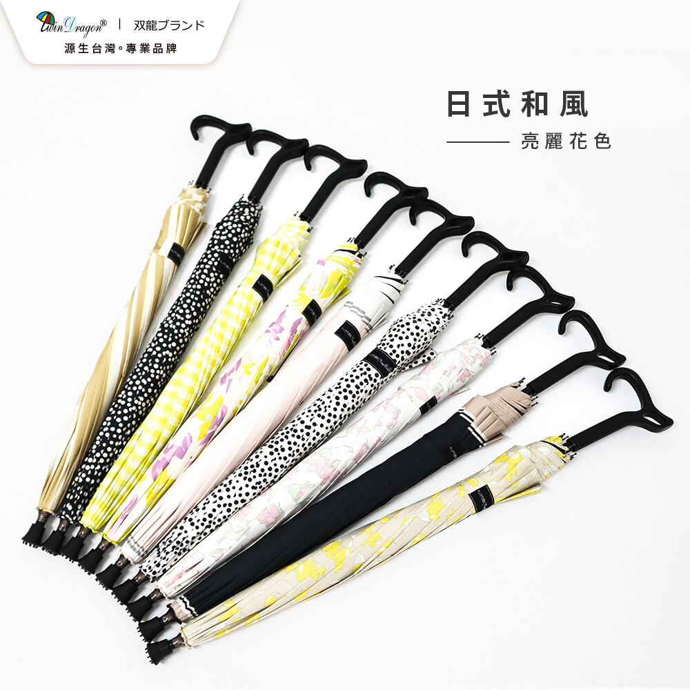 【雙龍牌】日系和風黑膠自動傘/助步減壓止滑/小碎花條紋圓點 抗UV晴雨傘防曬陽傘A0960)