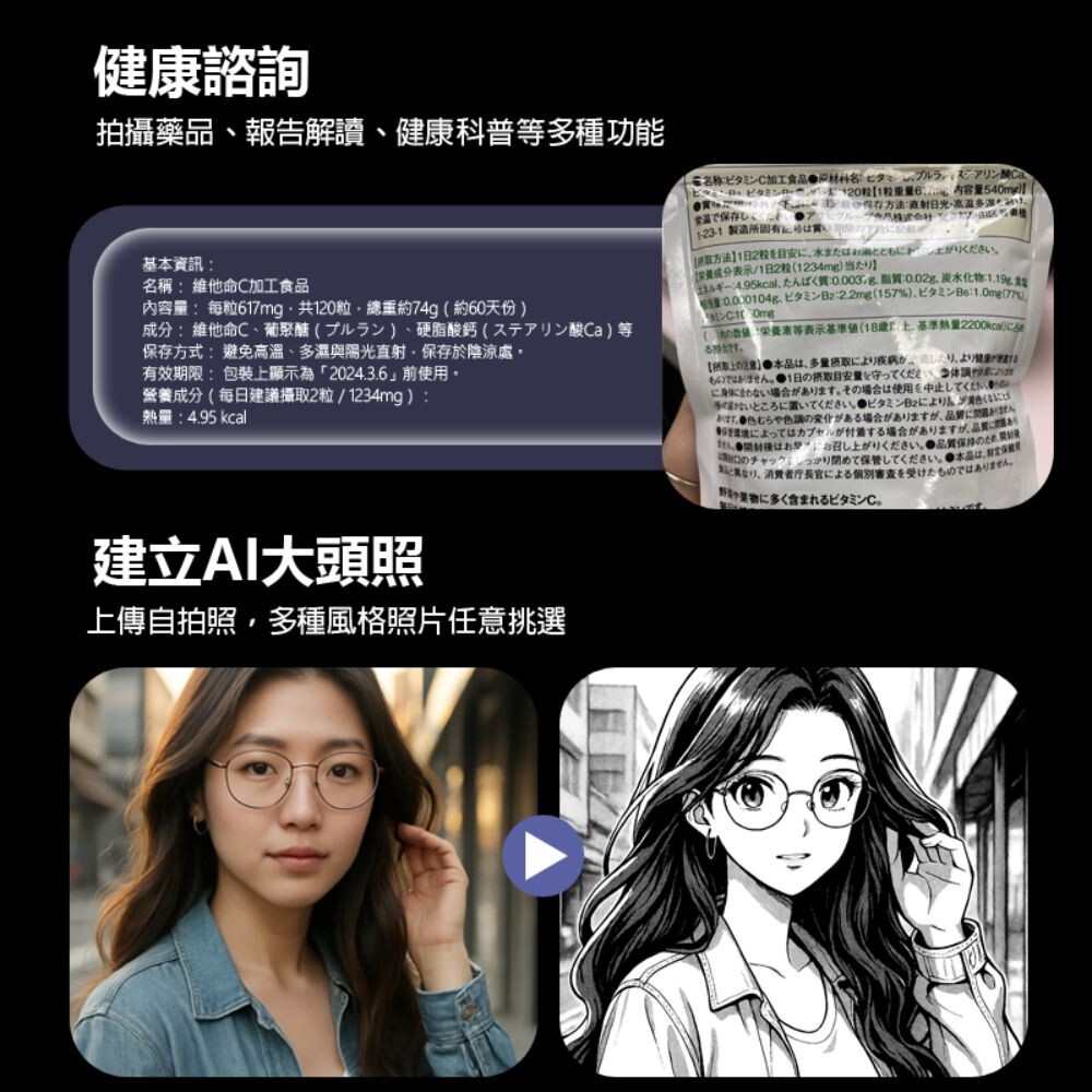 ★ Ai繪圖/照片動起來/錄音/拍照識萬物/作業指導/健康/AI音樂/百科/記帳等