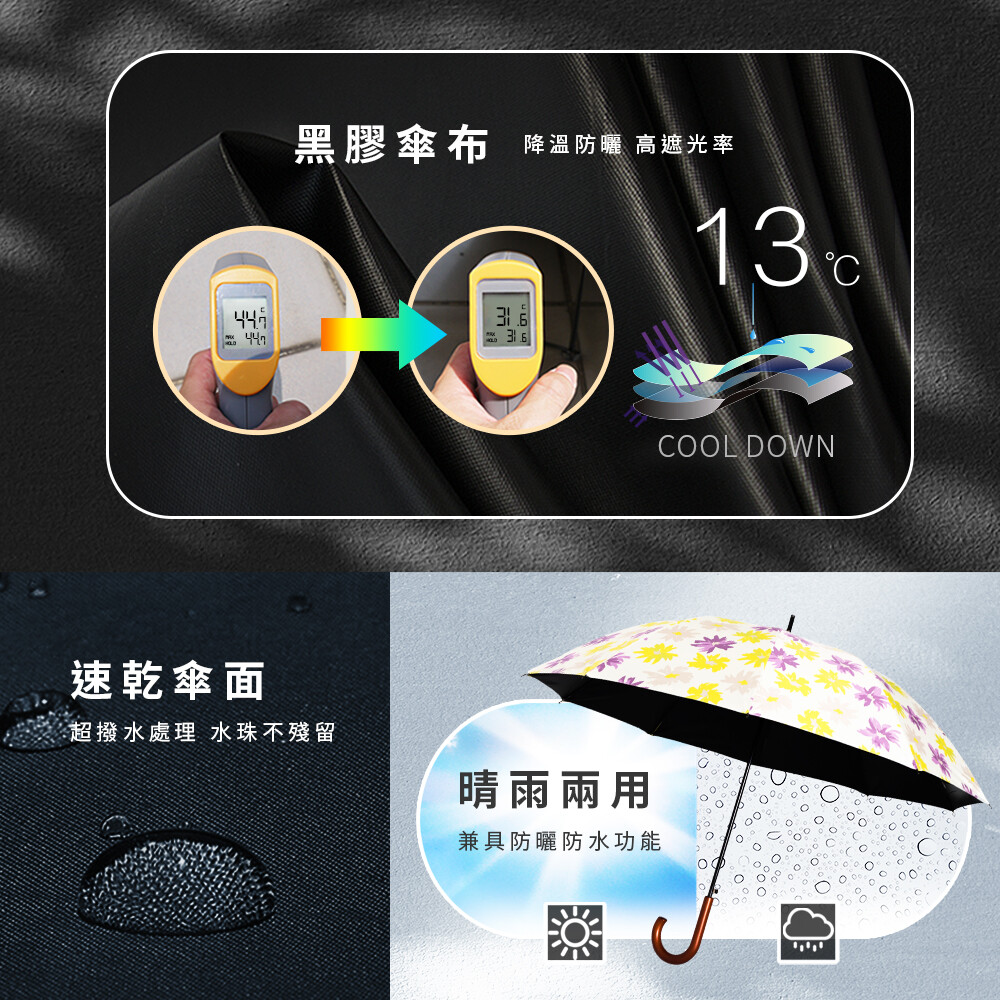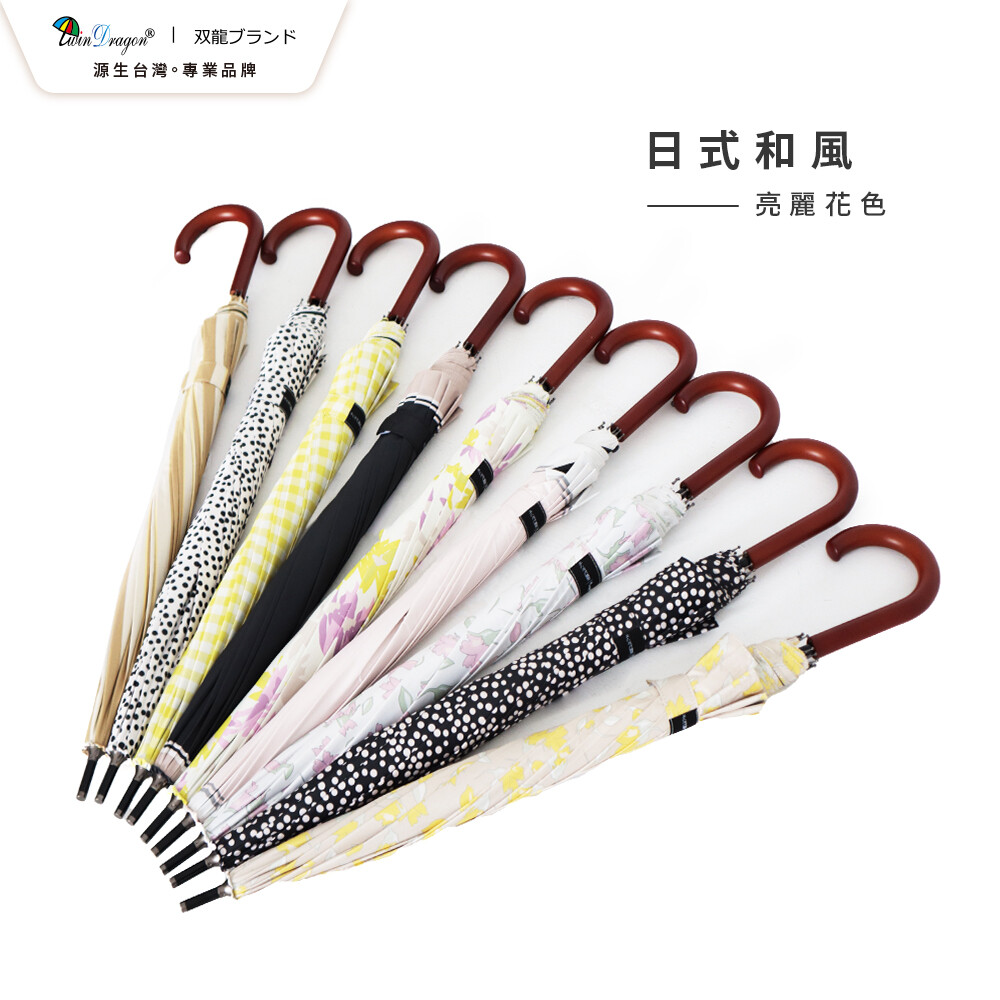 【雙龍牌】日系仕女黑膠自動傘/小碎花條紋圓點淑女傘(抗UV晴雨傘防曬陽傘自動直立傘A0632)