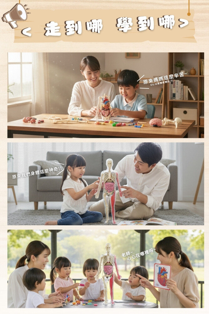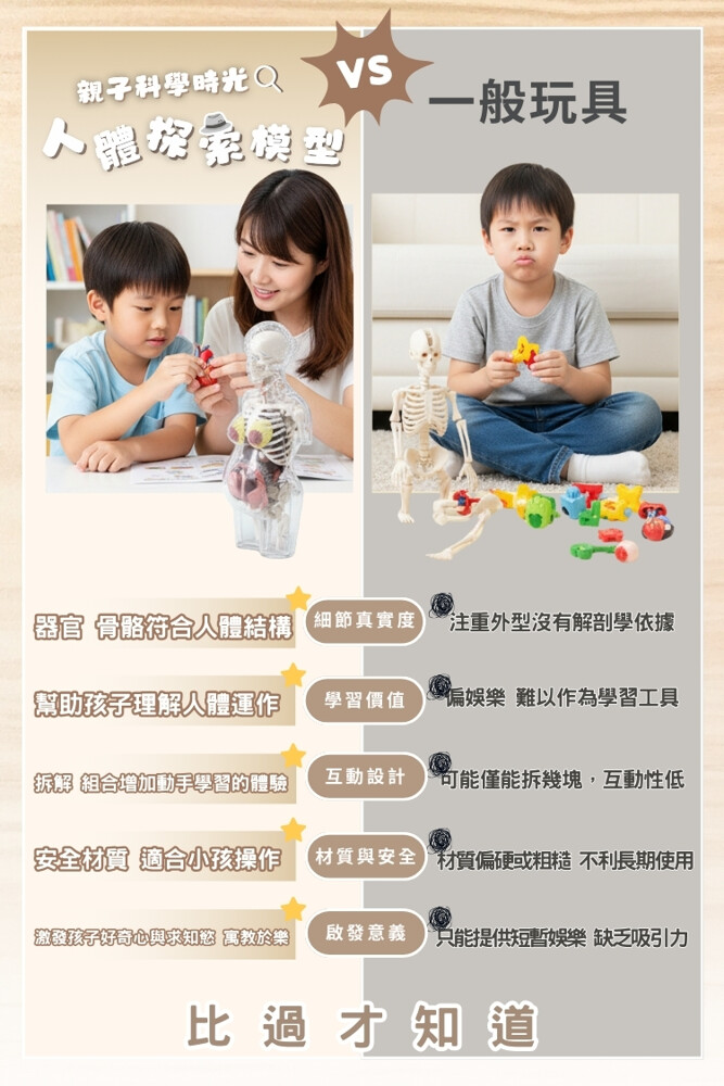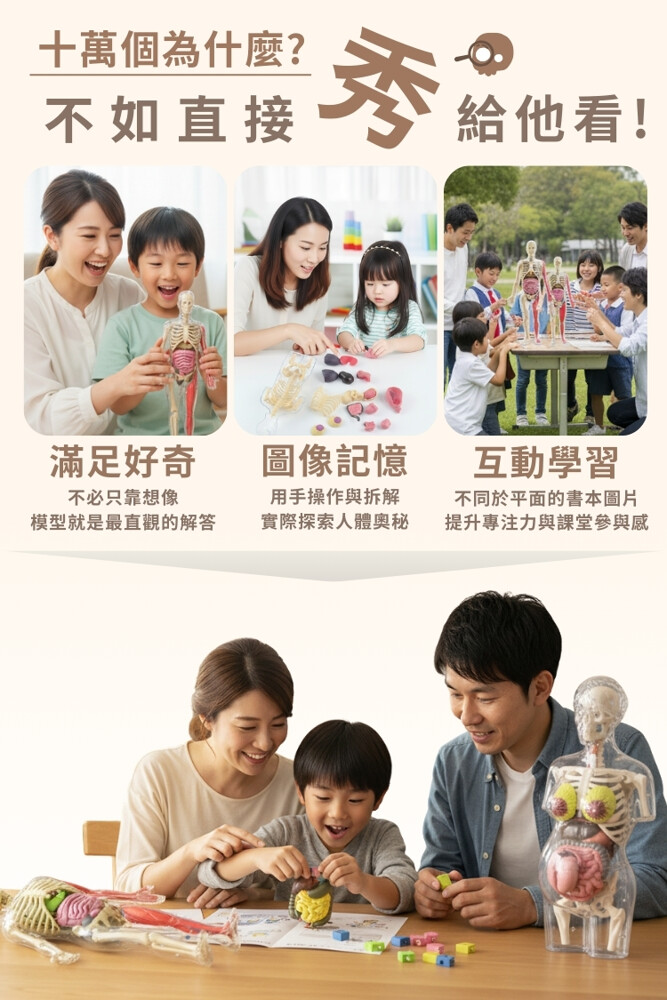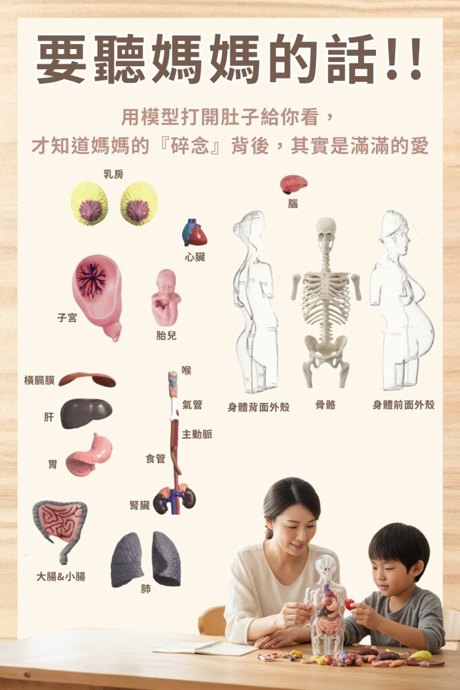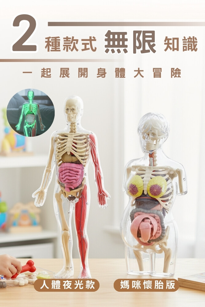 想像一下,當小孩問說:爸爸,心臟在哪裡呀?媽媽,我是怎麼從肚子出生的呀?這些問題爸媽總是要編個童話故事,而現在你有一個完美的教材可以跟孩子做教學?《親子科學時光|人體探索模型》就是為了解決這些問題而誕生!