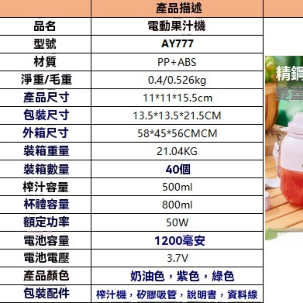 包裝配件 榨汁機,矽膠吸管,說明書,數據線