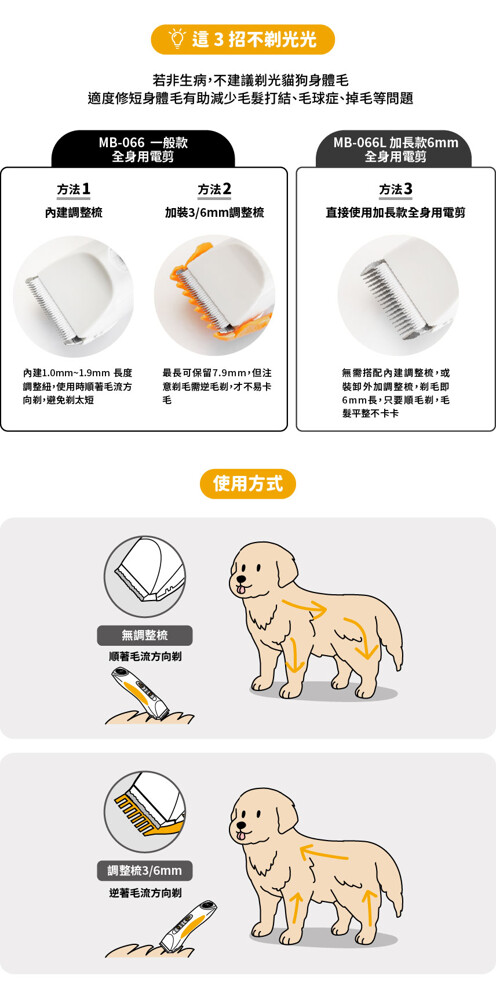 🔥 限量預購加長款6mm全身用電剪,剃短毛不必換調整梳