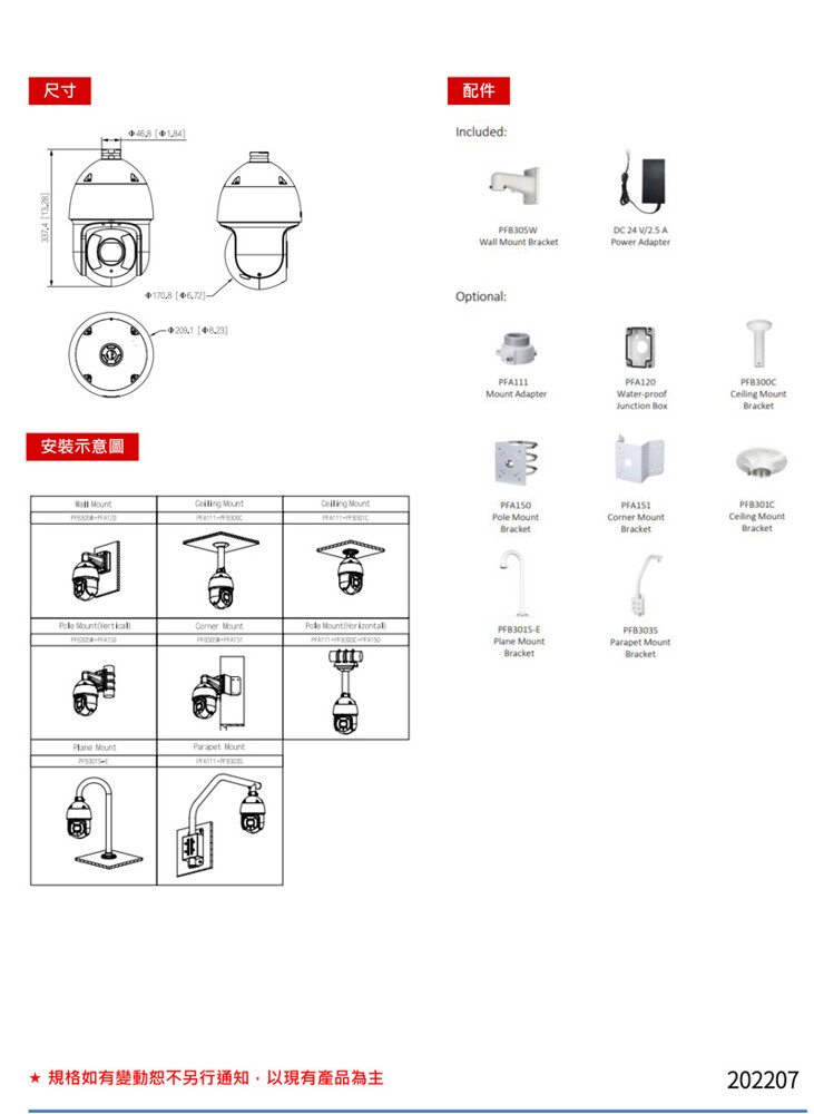 1/2.8〞星光級 CMOS 45 倍光學變焦 採用先進星光級技術 最大 25/30fps@4MP 紅外線距離可達 250M 自動跟蹤 3.0 周界防護 人臉檢測 SMD 4.0 IP67 、IK10 商品需搭配監控主機才可使用