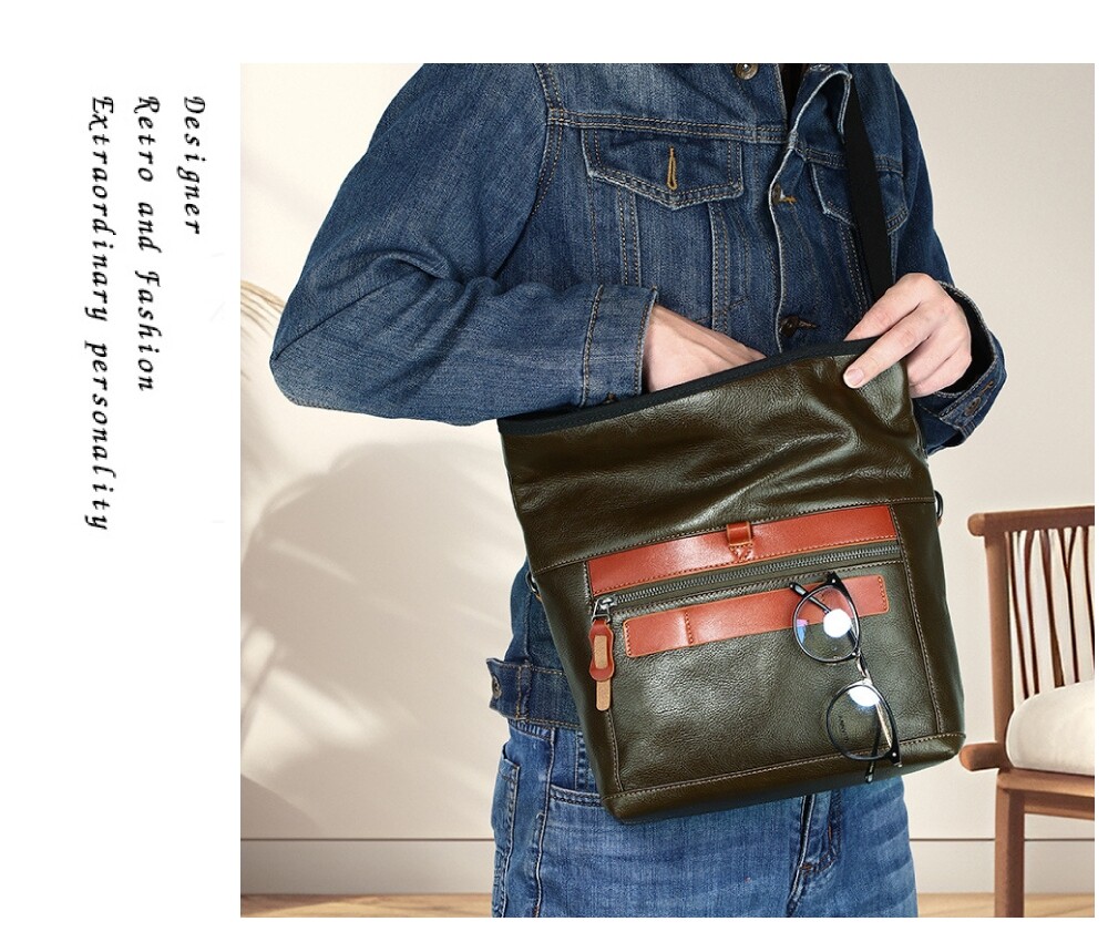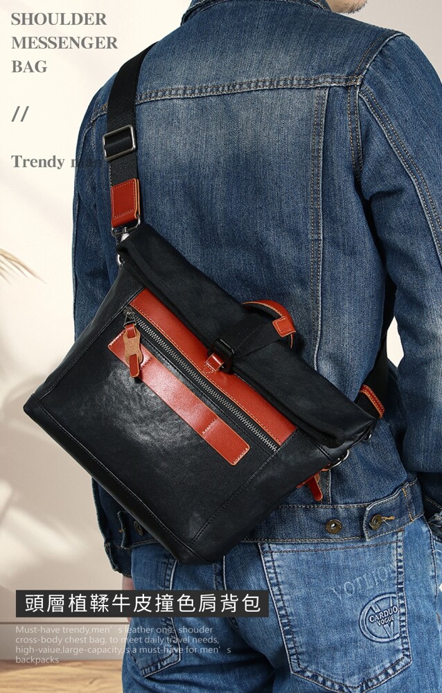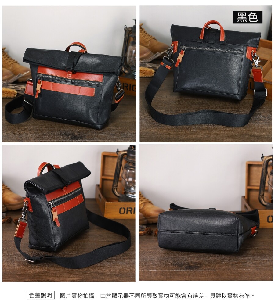 【喜番屋】真皮植鞣頭層牛皮男士撞色肩背包斜背包男包【LB1181】