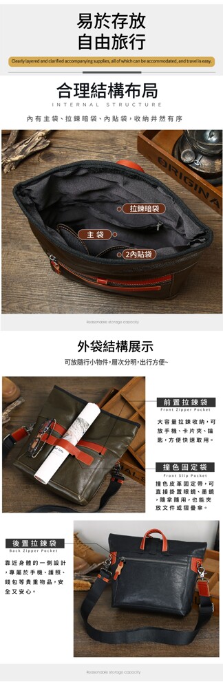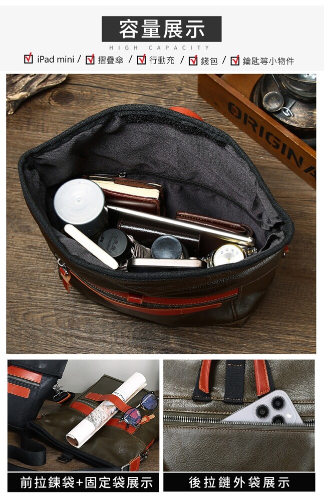 商品名稱:【喜番屋】真皮植鞣頭層牛皮男士撞色肩背包斜背包男包【LB1181】