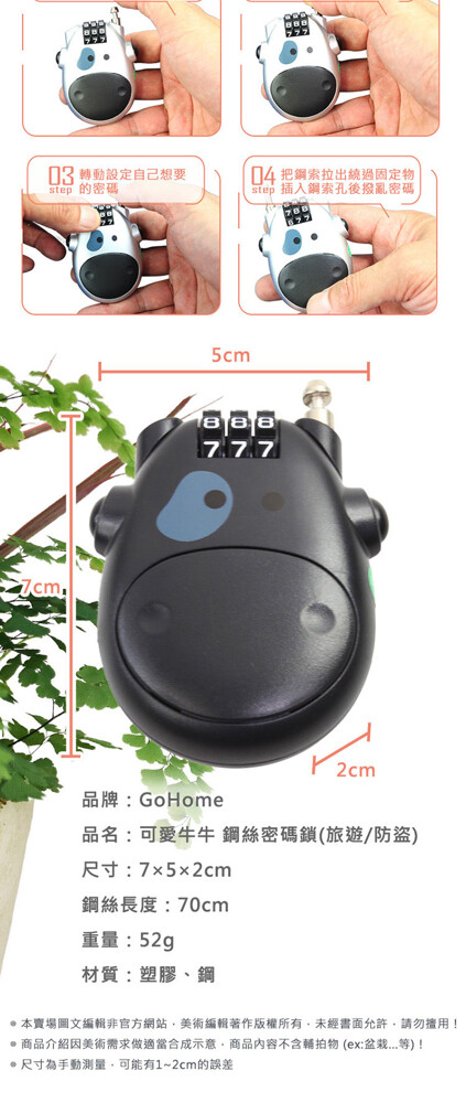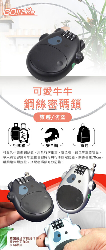 品名:可愛牛牛 鋼絲密碼鎖(旅遊/防盜)