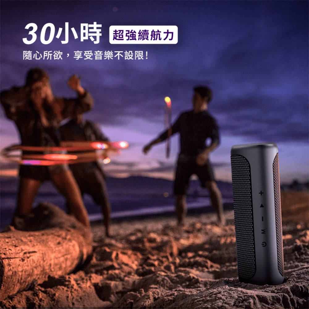 內建大容量電池,單次充電即可播放最長 30 小時音樂 ⏳,讓旅程與派對全程不間斷。搭配 Type-C 快速充電 ⚡,短時間即可恢復滿格電力。