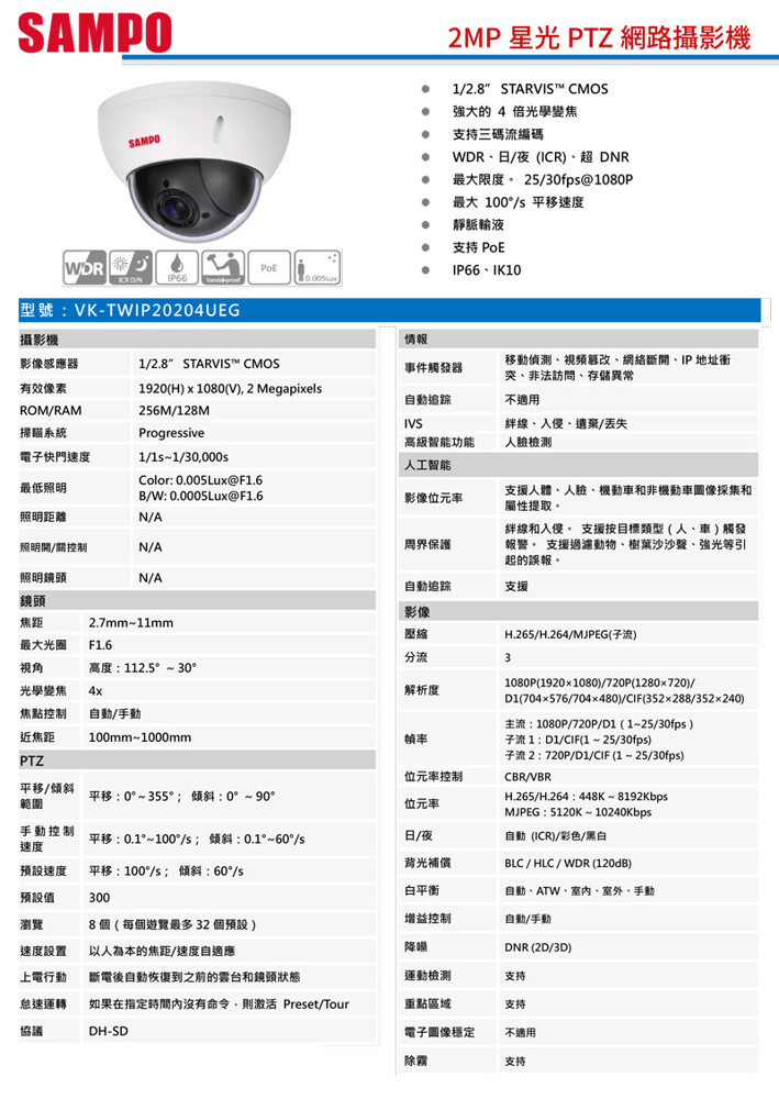 120db 寬動態(WDR),日/夜(ICR),專業雜訊抑制技術