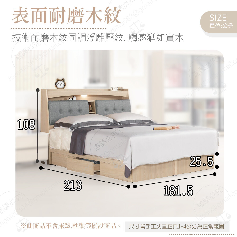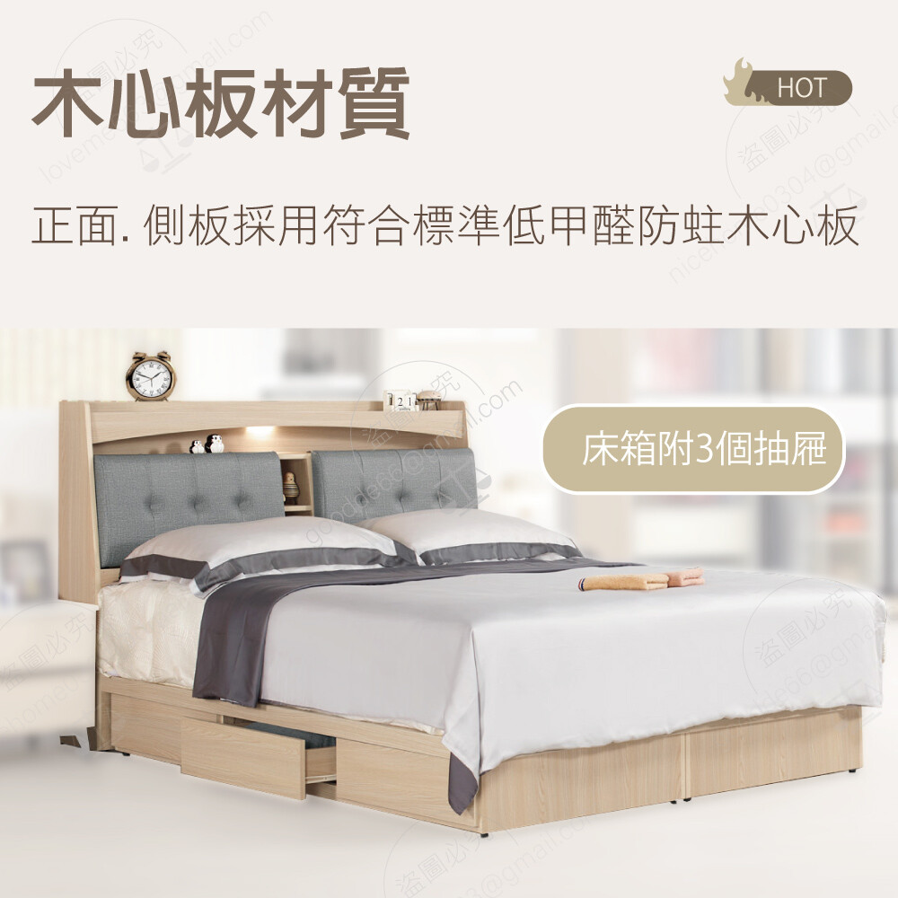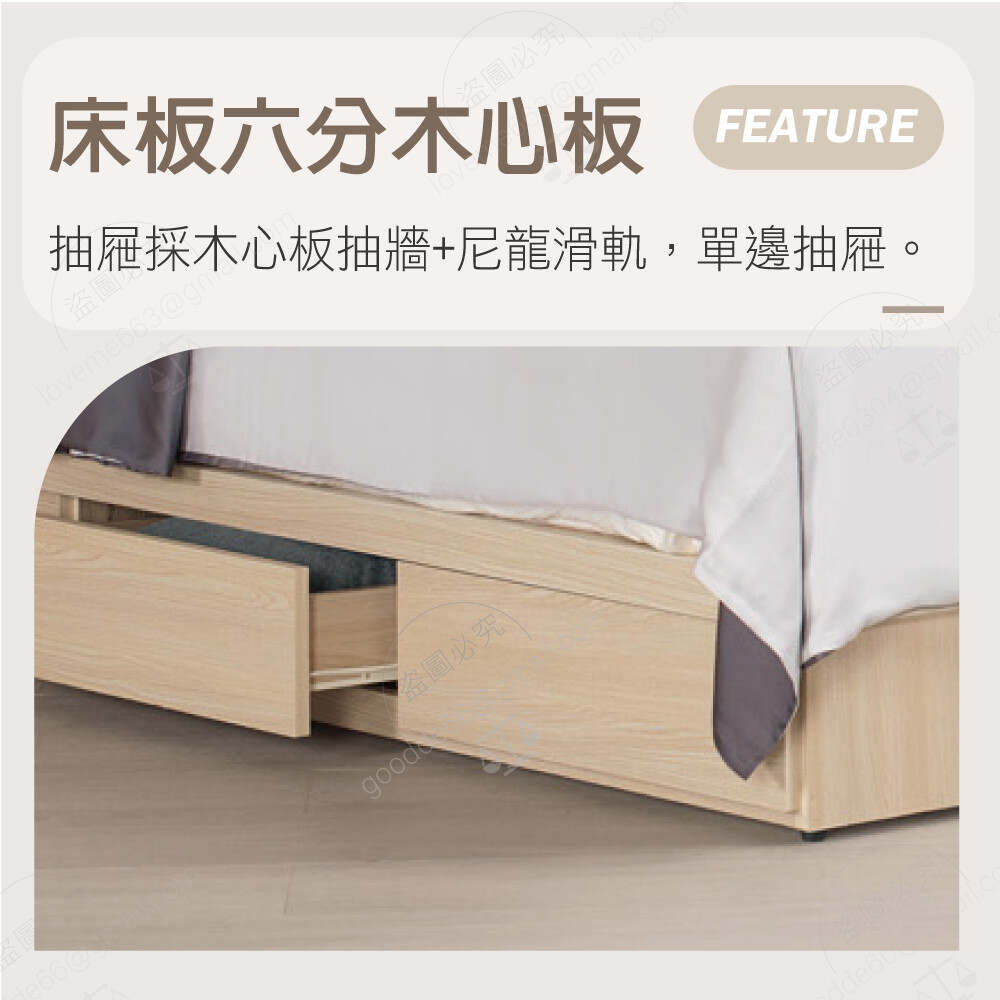 床板採六分木心板 單邊抽屜設計,床箱附3個抽屜