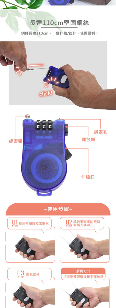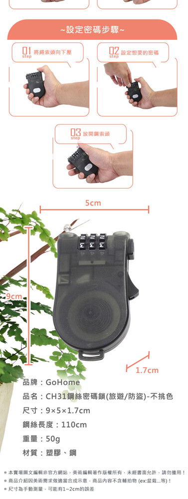 品名:CH31鋼絲密碼鎖(旅遊/防盜)-不挑色