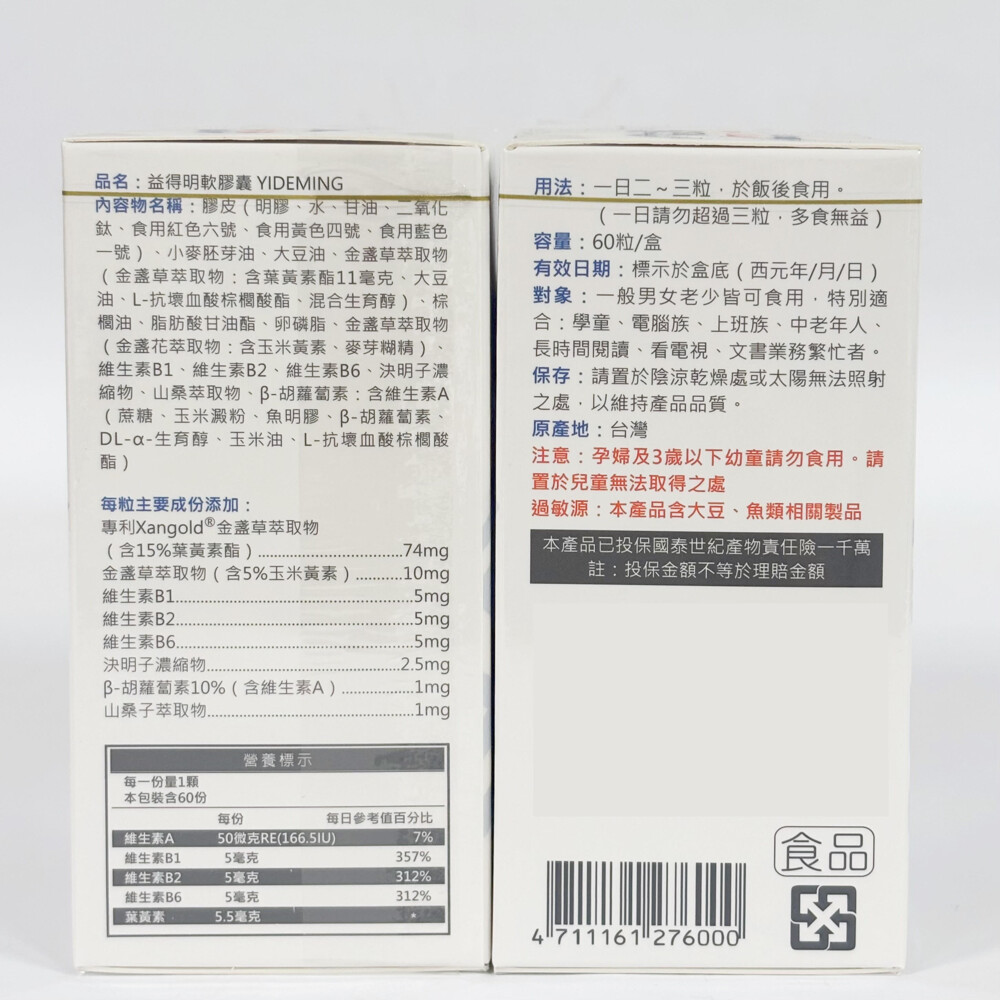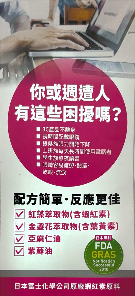 5大明亮配方 : 玉米黃素、金盞花萃取、決明子、山桑子萃取、胡蘿蔔素