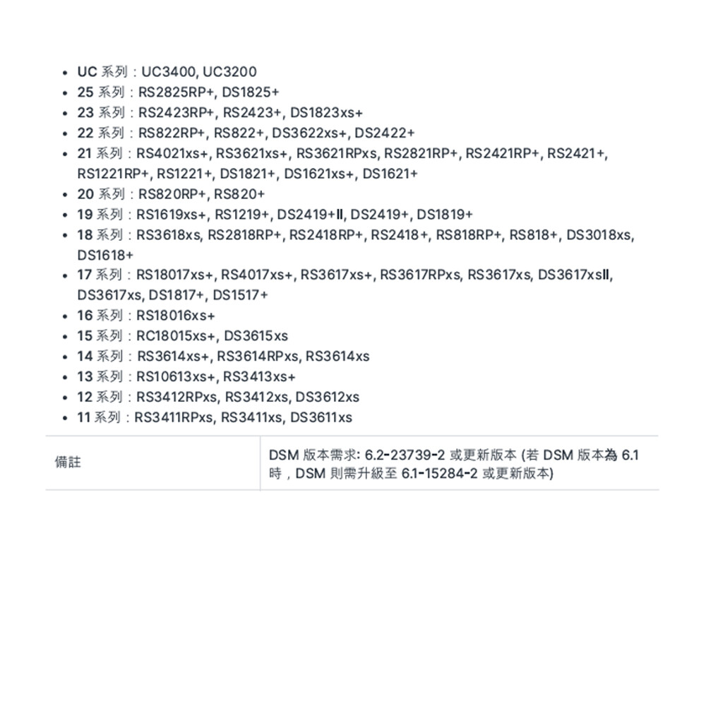 適用的機種為FS1018、DS3018xs、DS1819+、DS1618+