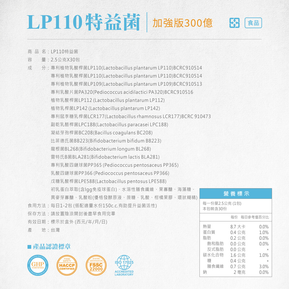 2.商品品名:【生寶國際生技】LP110特益菌(加強版300)