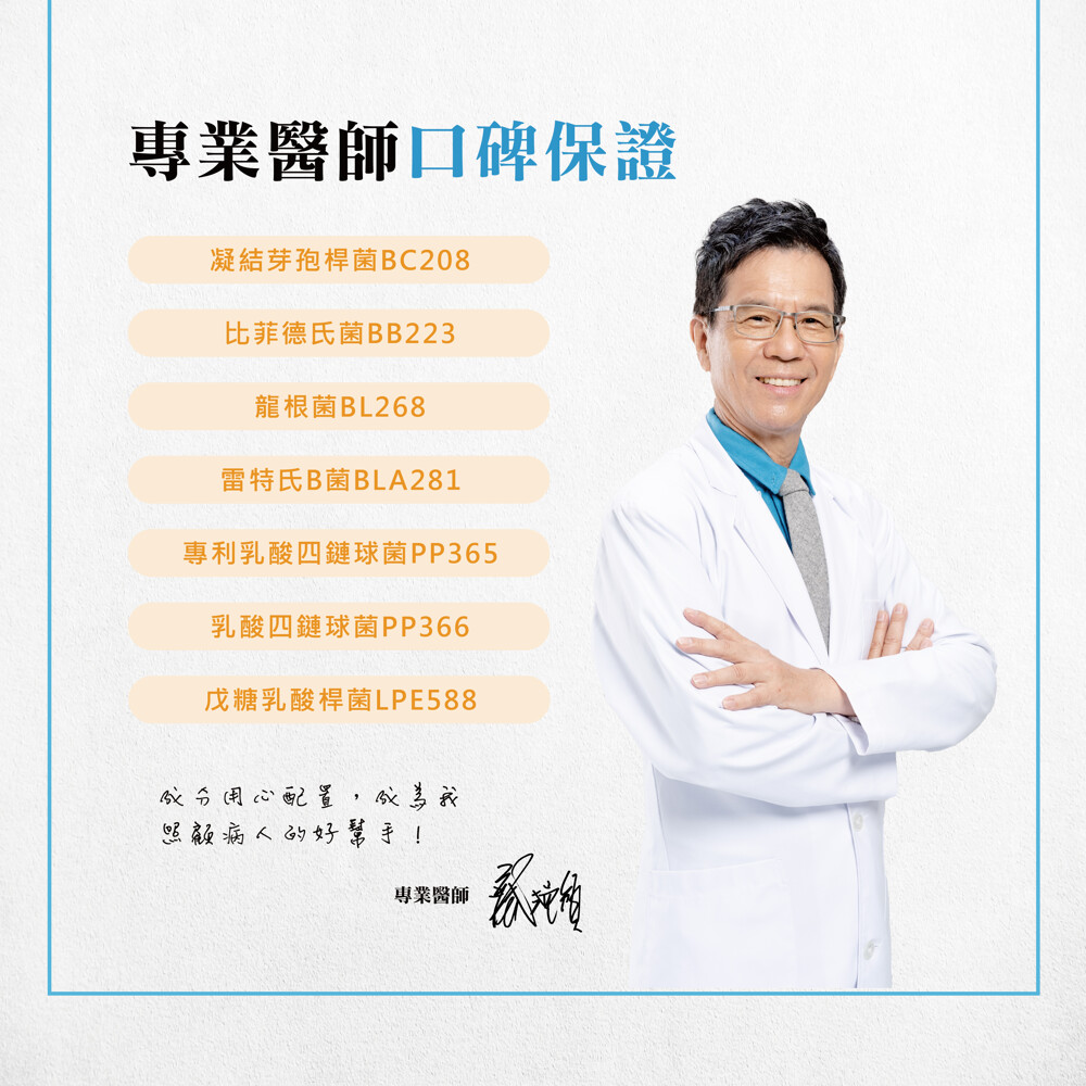 4.內容物名稱(成分):植物乳酸桿菌LP110、植物乳酸桿菌LP109、乳酸片菌PA320、雷特氏B菌BLA281、比菲德氏菌、凝結芽孢桿菌BC208、初乳蛋白萃取(含lgg免疫球蛋白)、水溶性膳食纖維