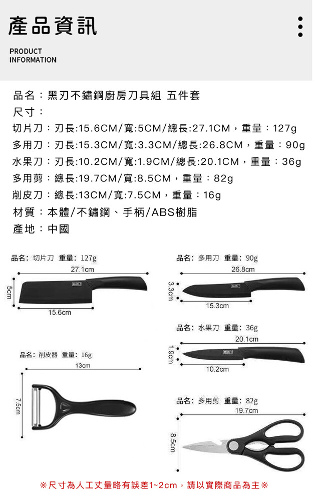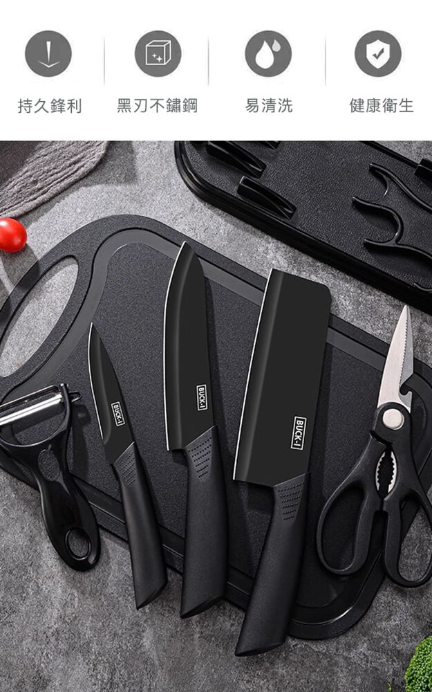 品名:黑刃不鏽鋼廚房刀具組五件套