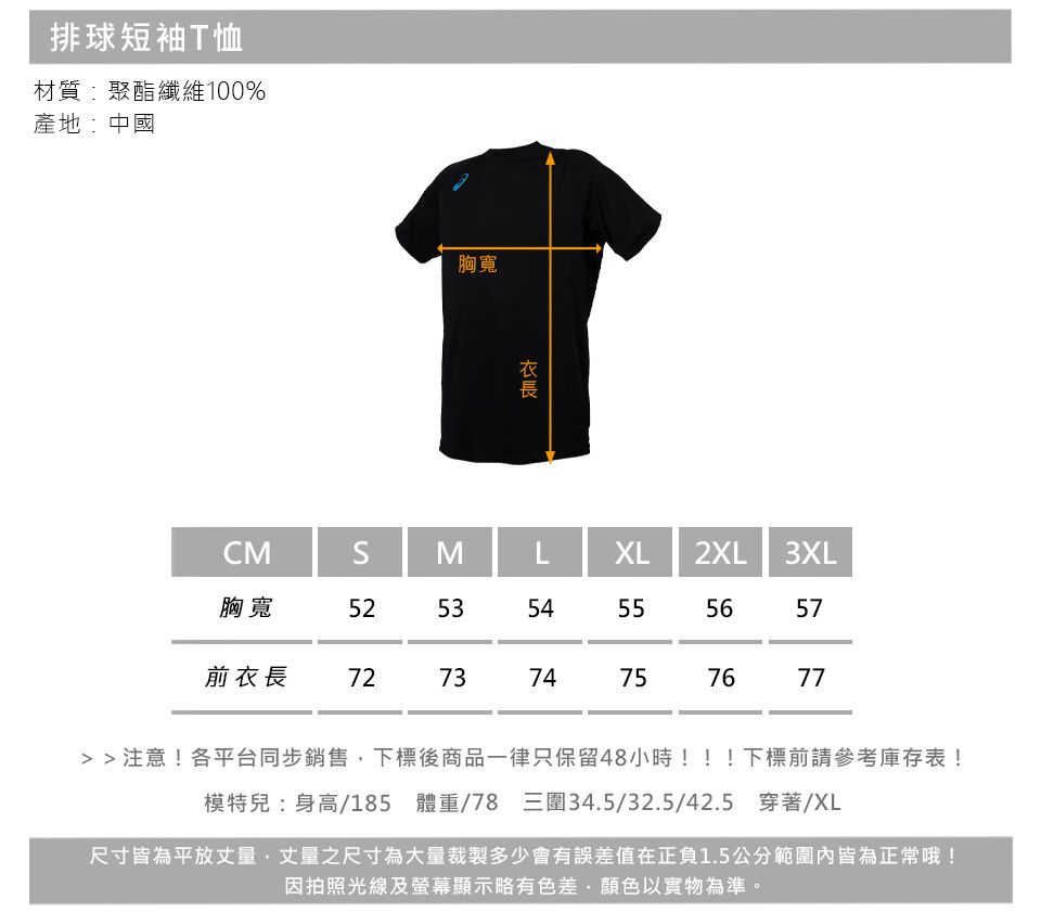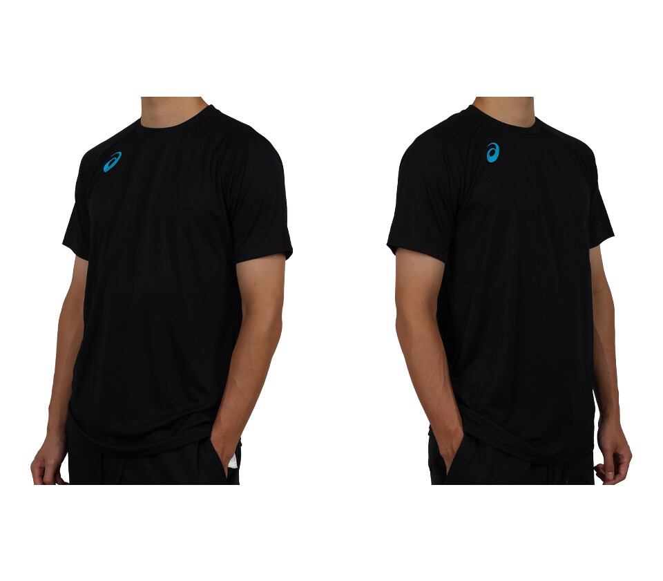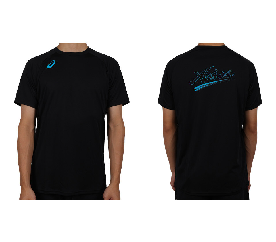 ASICS 男排球短袖T恤-運動 上衣 休閒 黑湖水藍