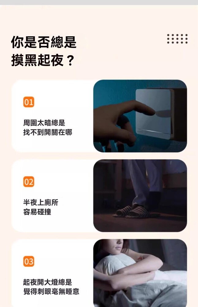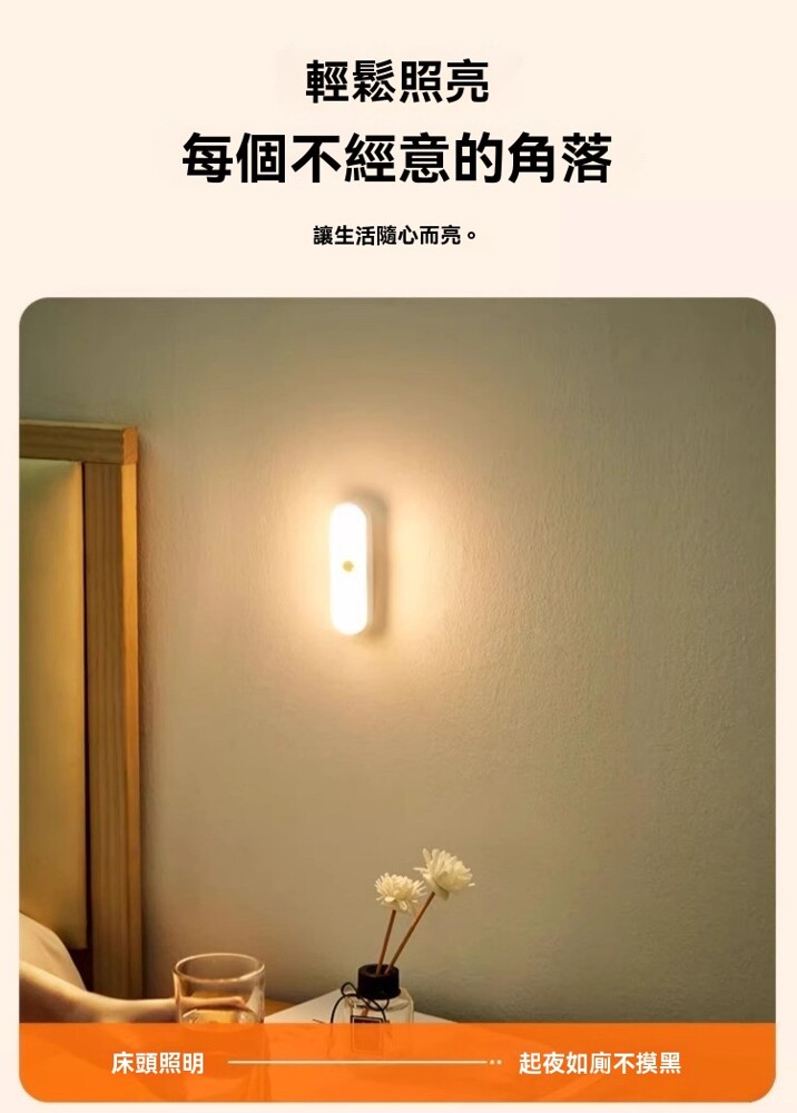 這款人體感應燈是你的居家智慧新夥伴!它採用廣角感應技術,讓你一進門、一起床,燈光即刻自動亮起,不再怕摸黑。免插電、免佈線的磁吸安裝設計,可輕鬆黏貼在玄關、走廊、衣櫃或任何需要照明的角落。柔和的燈光還能當作小夜燈,提供溫馨的守護,讓你與家人在夜間行動更加安心。