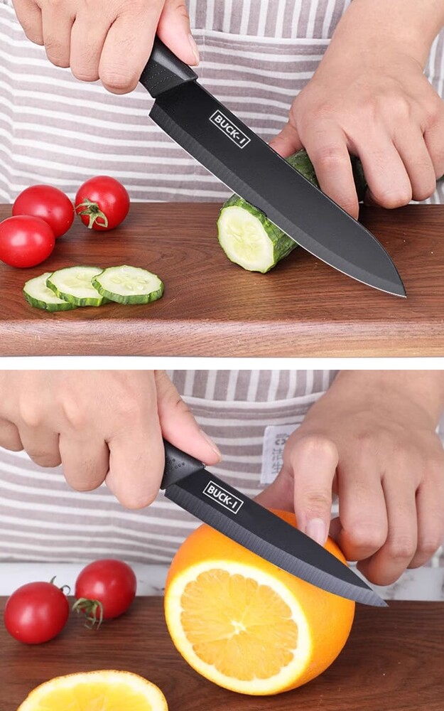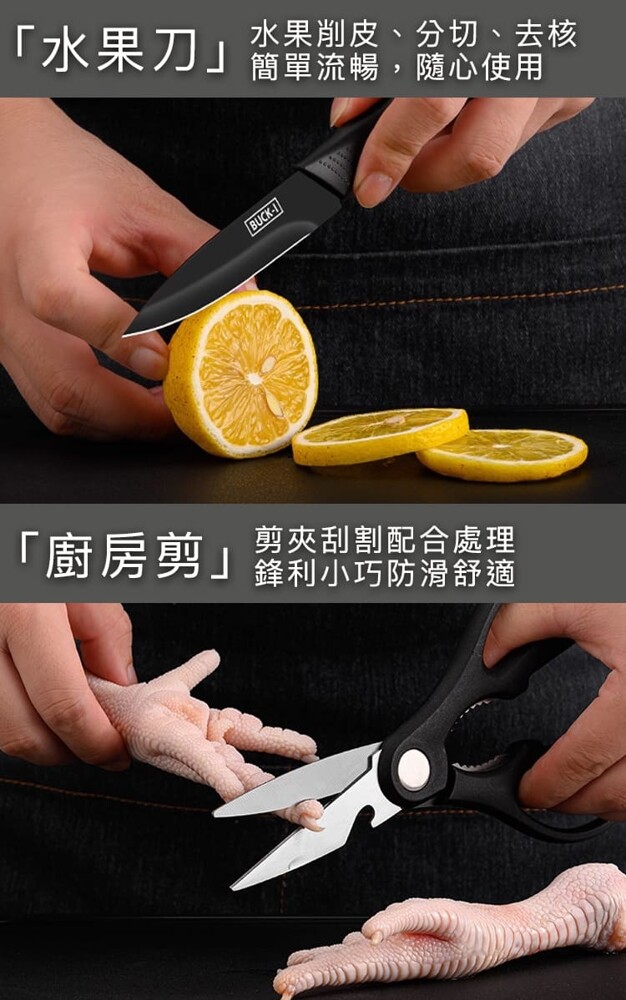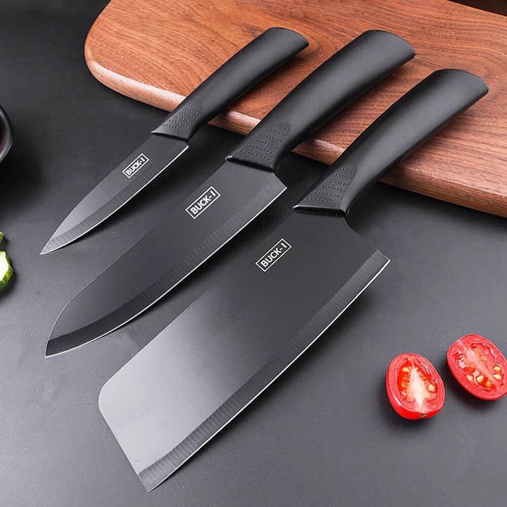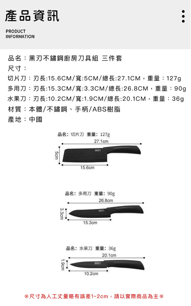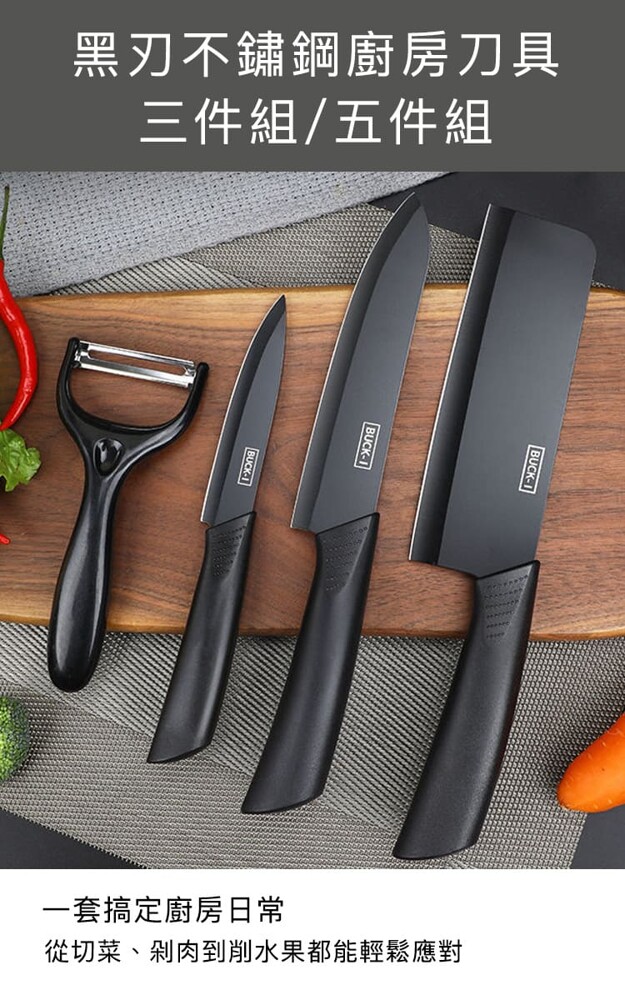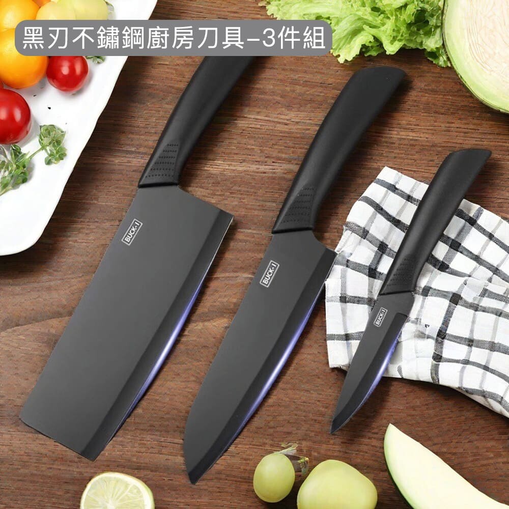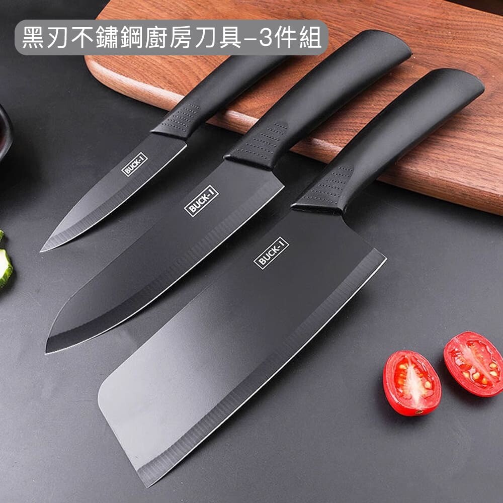品名:黑刃不鏽鋼廚房刀具組三件套