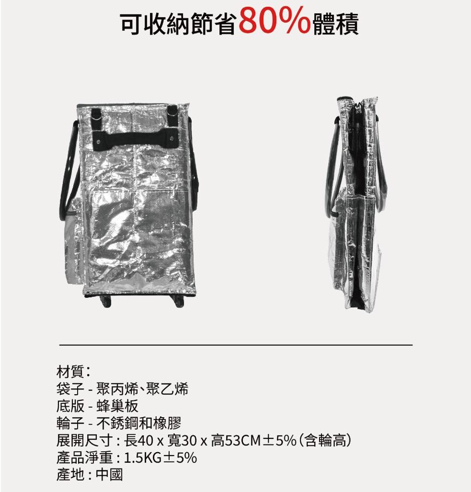 展開尺寸 : 長40 x 寬30 x 高53CM±5%(含輪高)