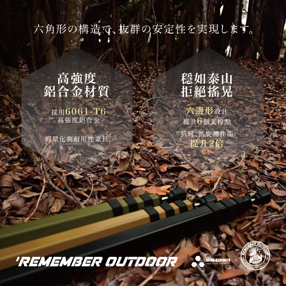 Hex-Hive Tech 蜂巢科技設計,將六邊形結構的穩定性與抗風能力融入戶外裝備中。蜂巢營柱不僅輕量耐用,更具卓越的穩固性能,為露營者提供前所未有的支撐力。