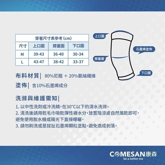 – M:上口圍:39-43cm/膝蓋圍:36-40cm/下口圍:30-34cm