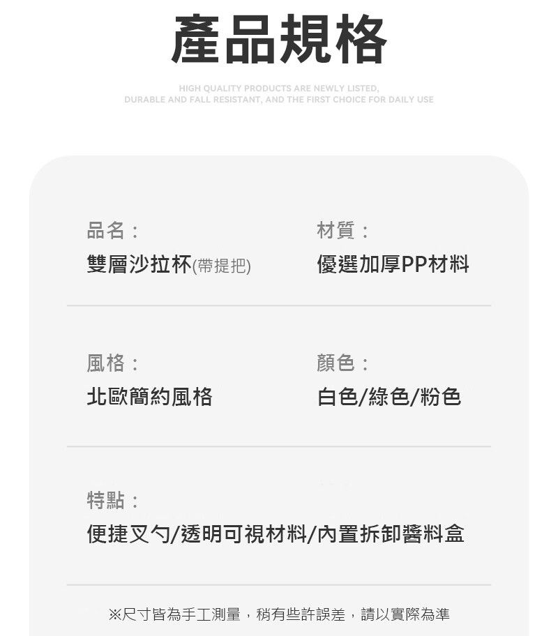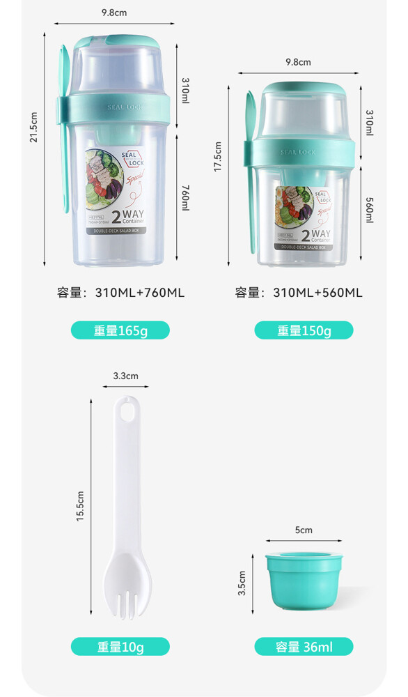 ◆配件:上下層保鮮杯/內置拆卸醬料盒/叉勺/掛繩