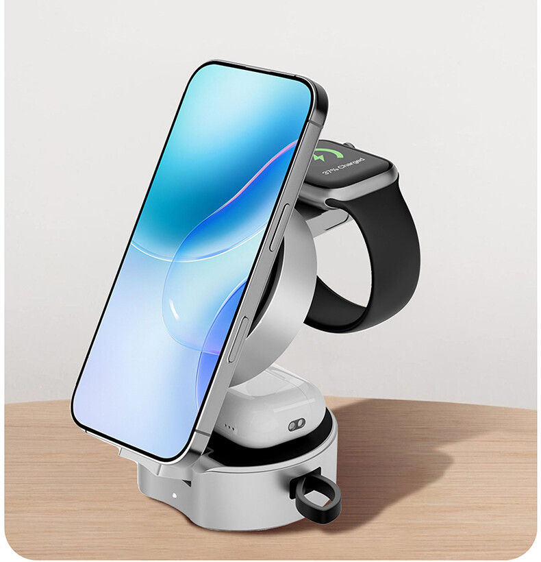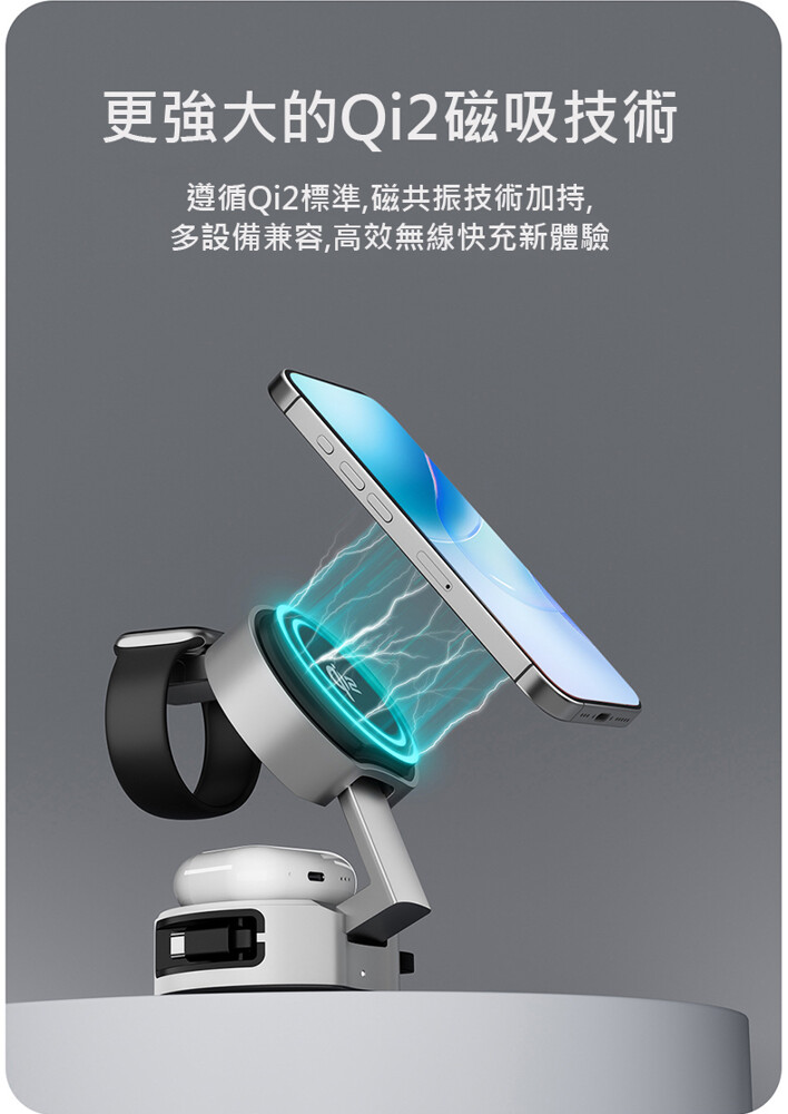 ◆Qi2官方認證,三合一無線充電器 手機/耳機/手錶同時充電,桌面不凌亂