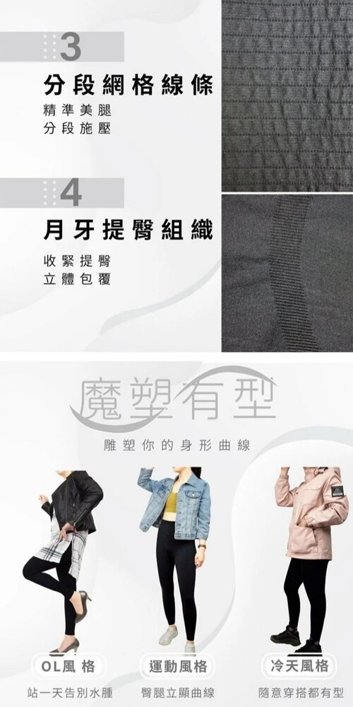 ◆ 精緻縫線 / 小腳設計 / 分段網格線條 / 月牙提臀組織