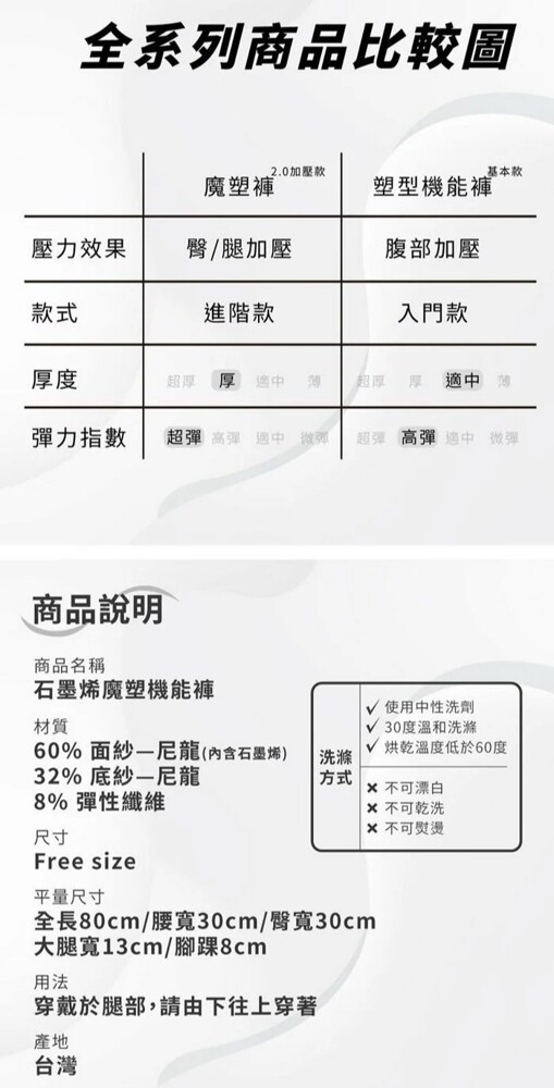 ◆ 品名:石墨烯魔塑機能褲