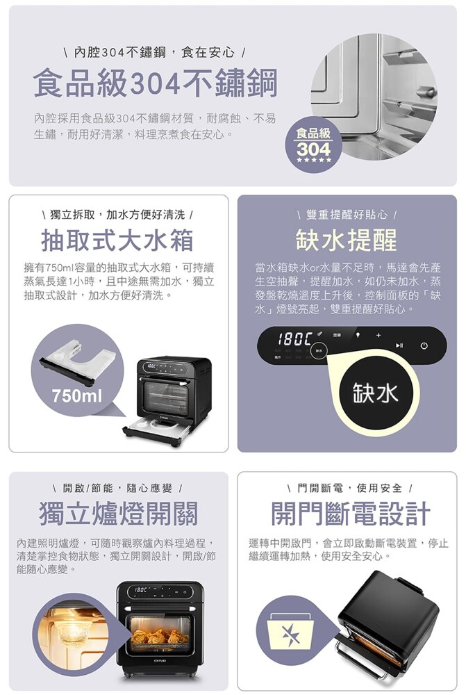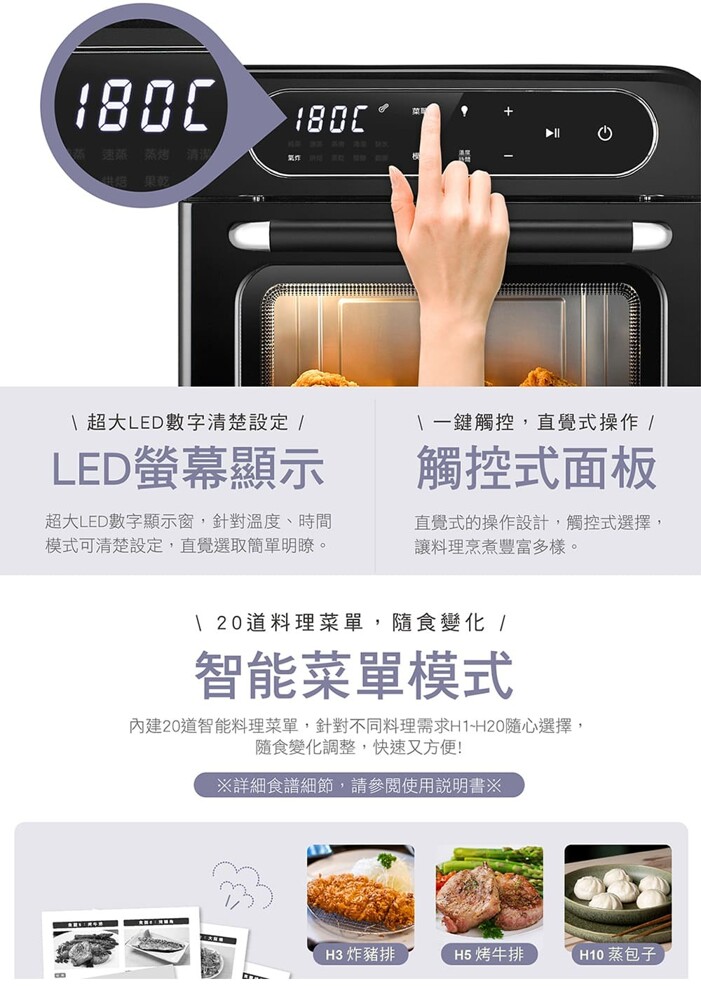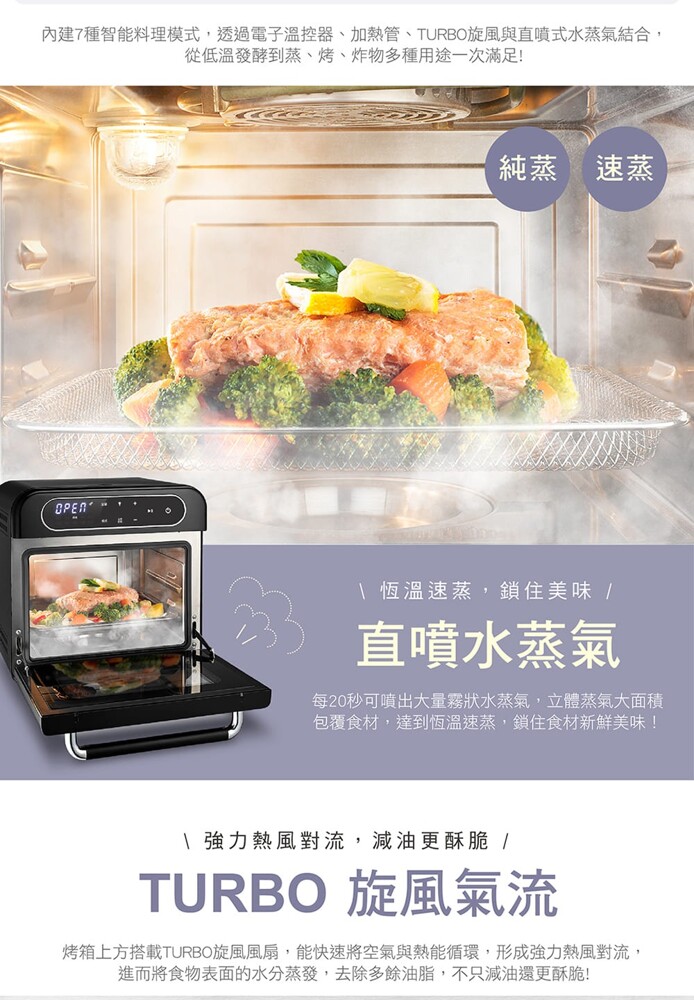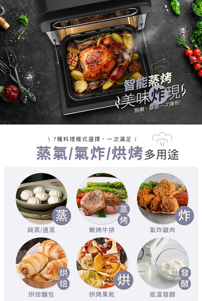 ◆料理模式: 7種 (純蒸/速蒸/蒸烤/氣炸/烘焙/果乾/發酵)