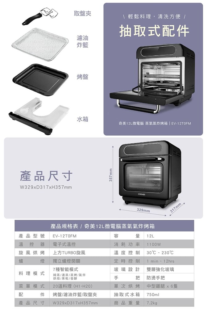 【CHIMEI 奇美】12L微電腦蒸氣氣炸烤箱(EV-12T0FM)