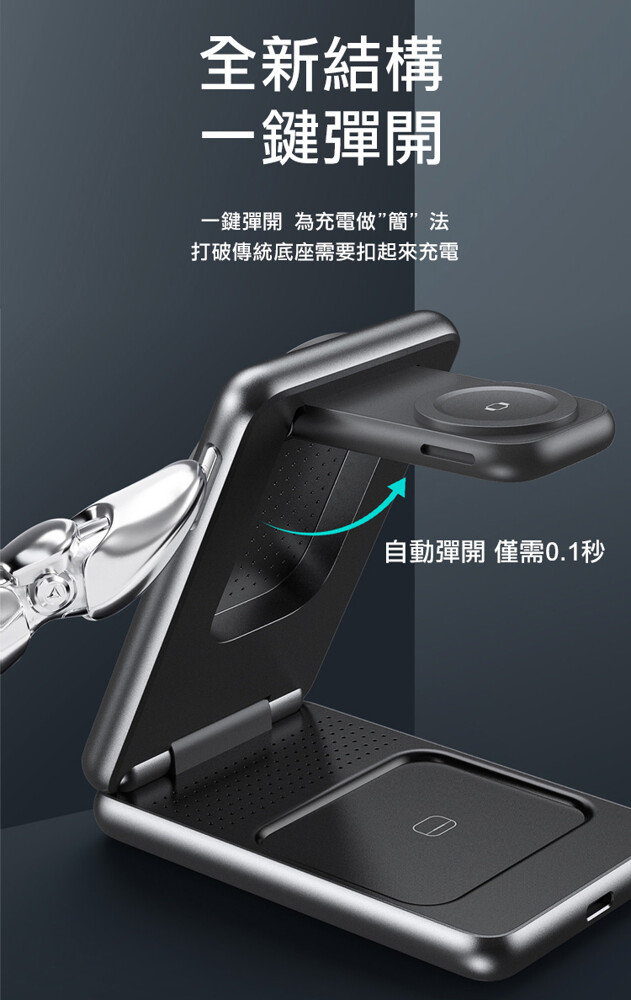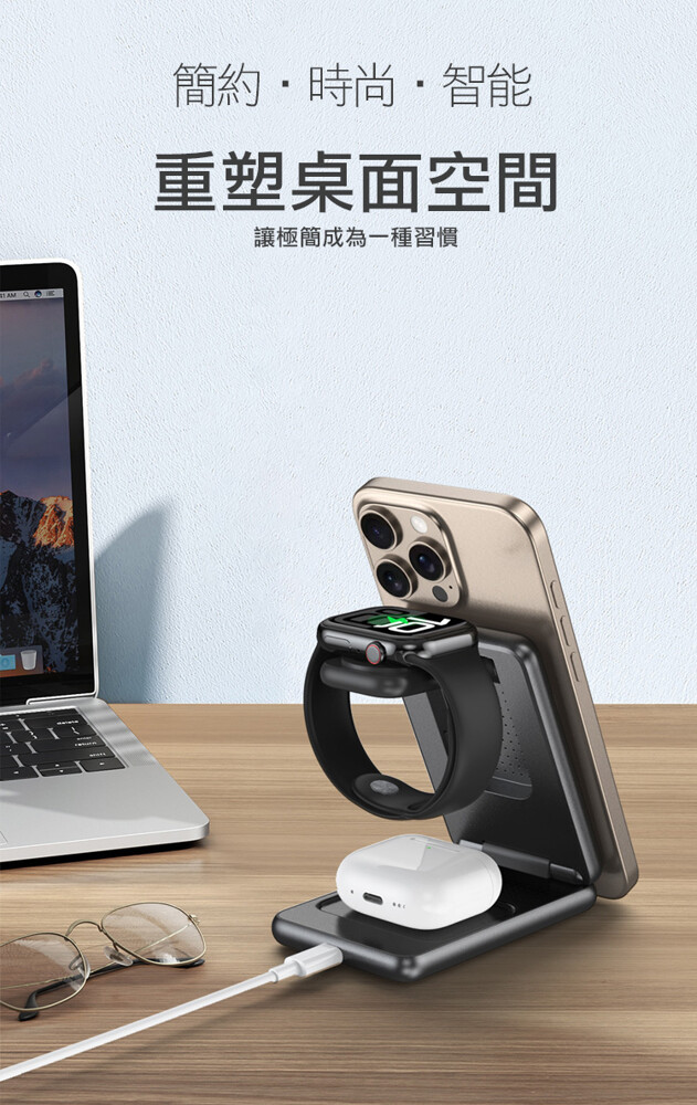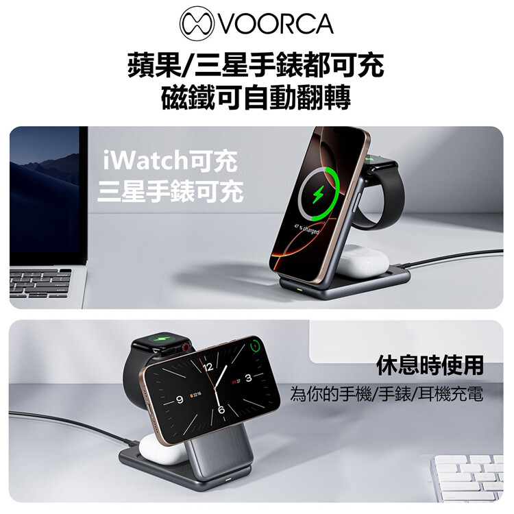 VOORCA WT-K474 Qi2認證15W磁吸無線充電器折疊式三合一 蘋果/三星手錶都可充