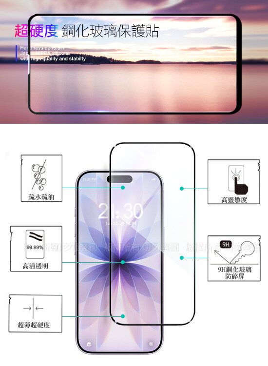 表面頂級9H硬化抗刮耐磨處理,有效防止螢幕刮傷,使螢幕保護貼更加的耐用