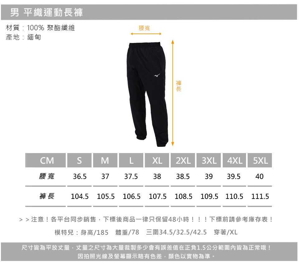 MIZUNO 男平織運動長褲-慢跑 訓練 美津濃 黑白