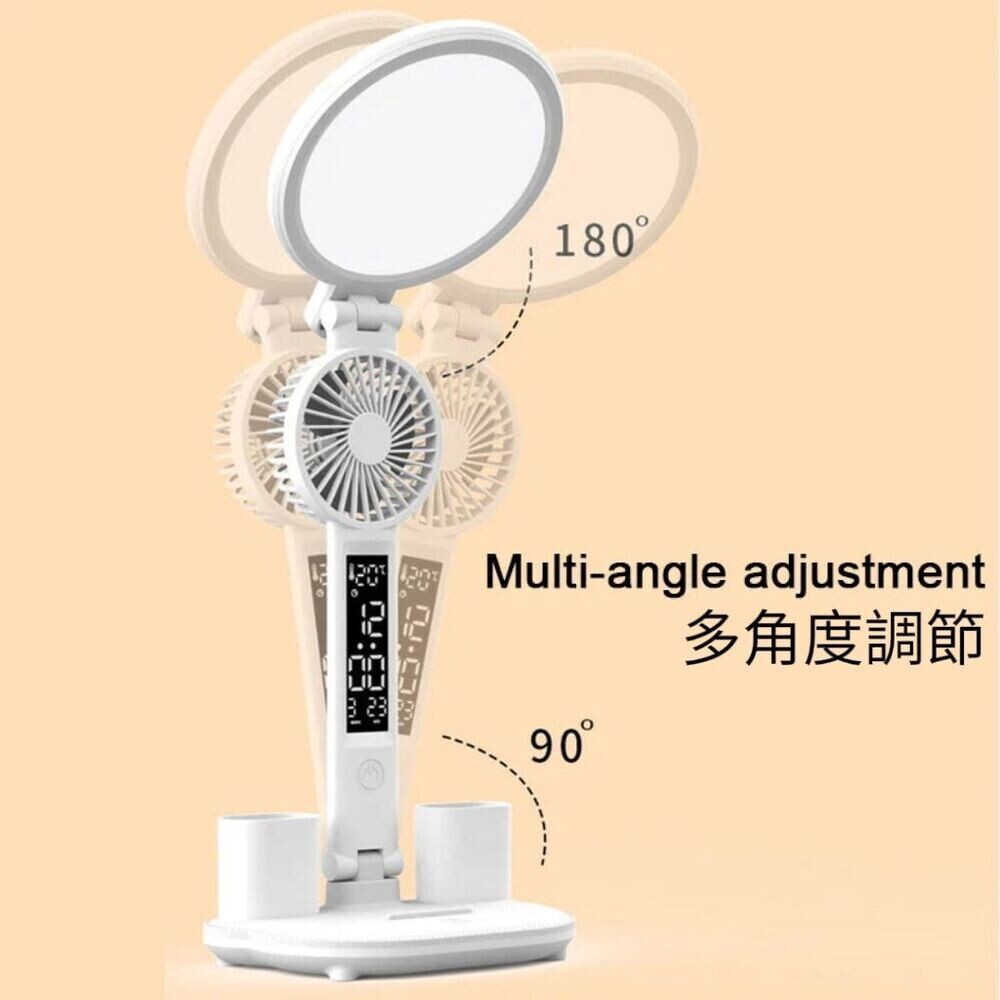 多功能收納:內建筆架、手機支架與迷你風扇