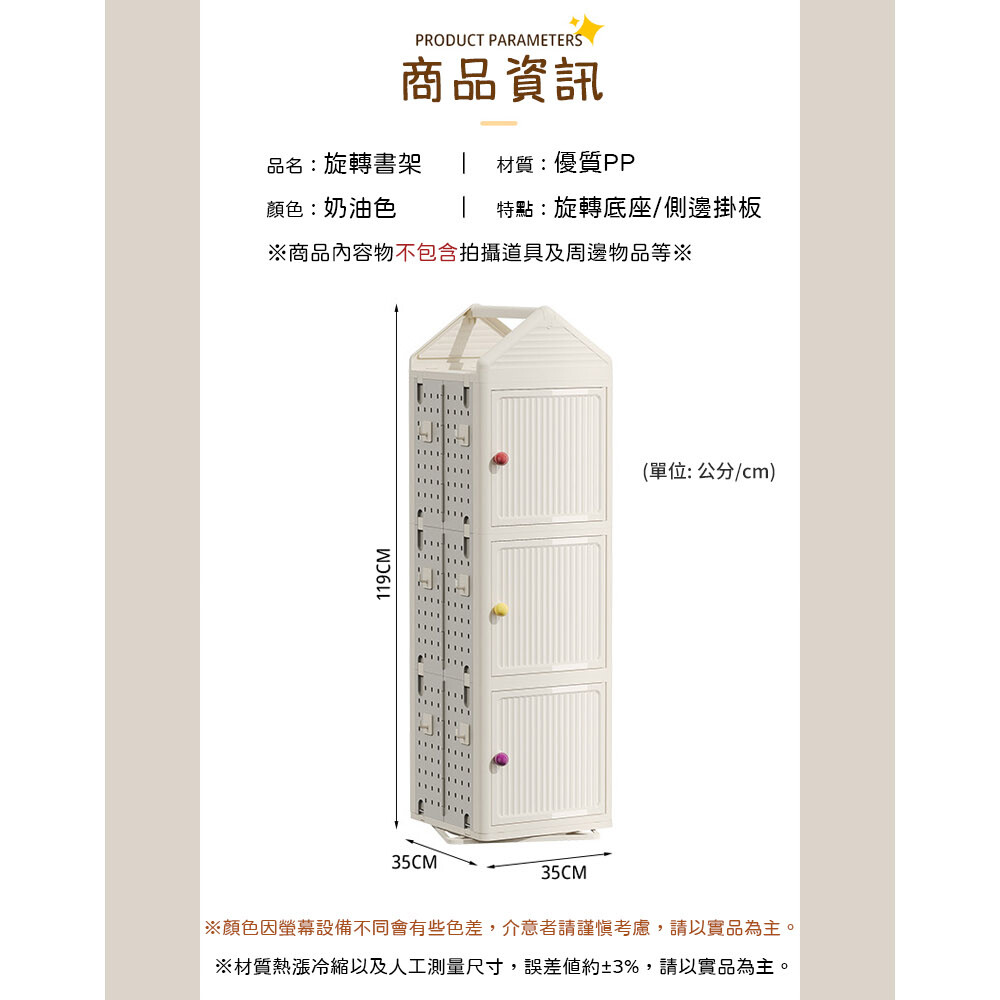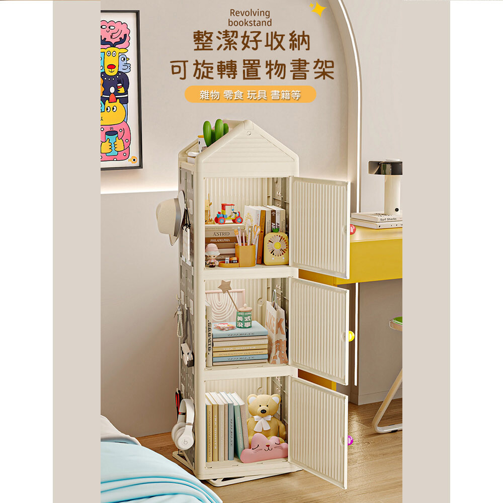 【AOTTO】小屋洞洞板三層置物旋轉收納書架(書櫃 置物櫃 收納櫃 收納架 層架)