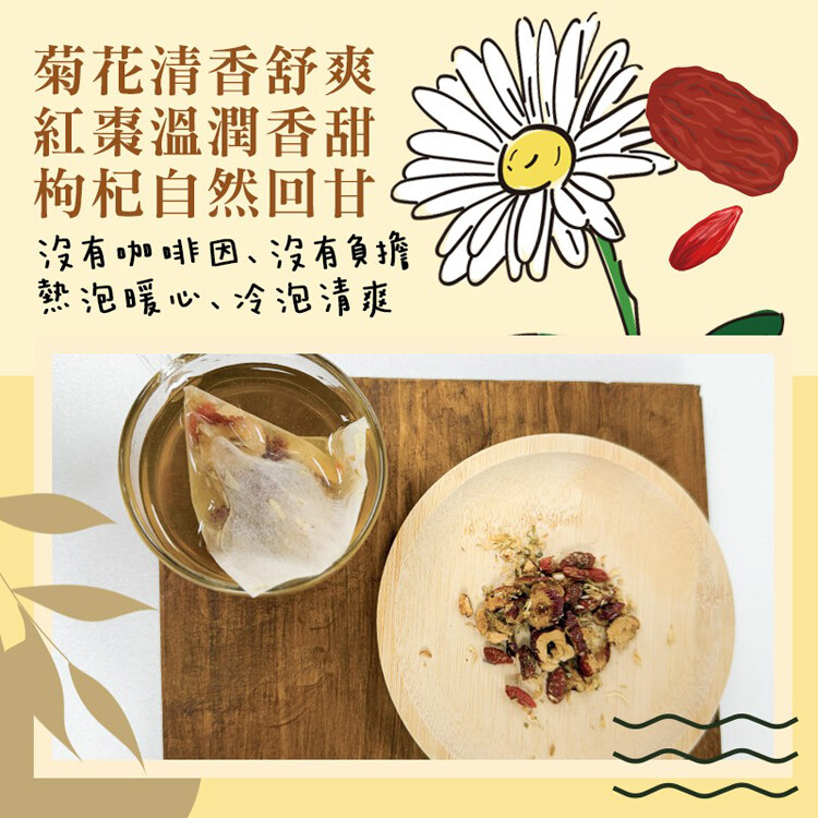 菊花清香舒爽 紅棗溫潤香甜 枸杞自然回甘