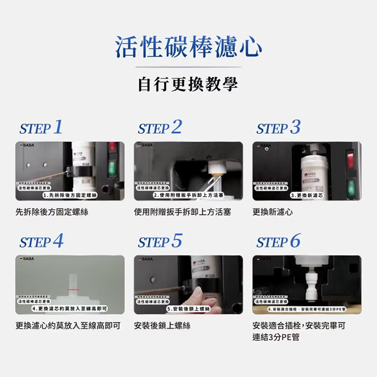 配件:主機掛版*1,螺絲*4,接水盒*1,三通板手*1,濾芯板手*1,三通閥*1,4轉3分插栓*1,2轉3分插栓*1,