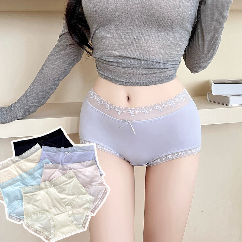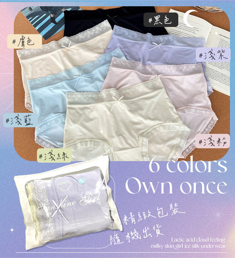6件組 乳酸雲感奶肌少女冰絲內褲 透肌裸感親膚舒適 包臀中腰 蕾絲內褲 女性內褲