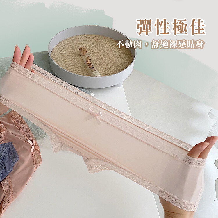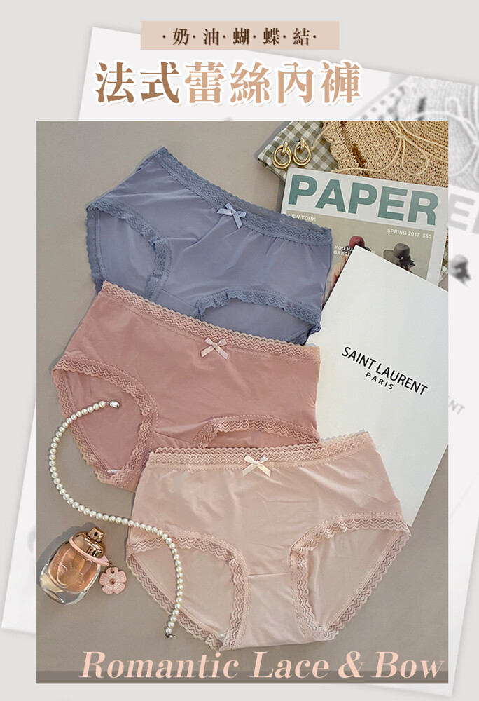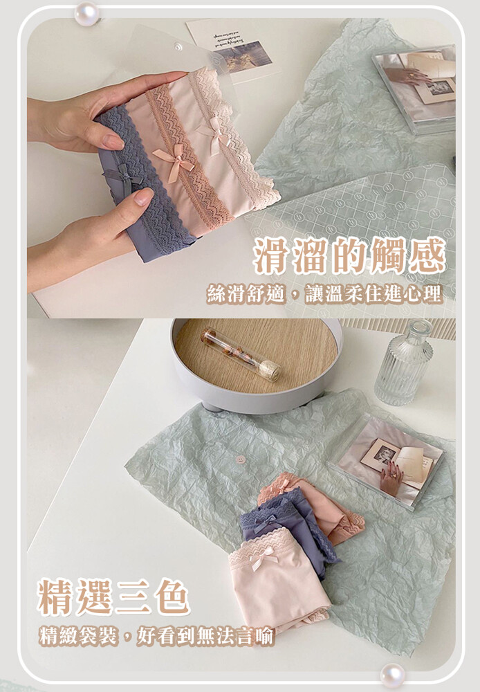 3件組 法式奶油蝴蝶結蕾絲內褲 蕾絲邊少女 冰絲內褲 涼感透氣 包臀中腰 學生內褲 女性內褲