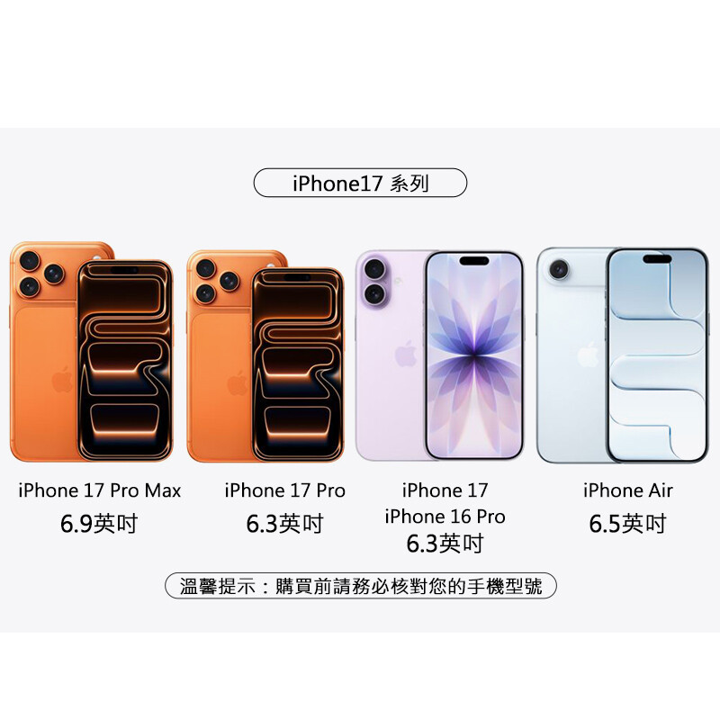 1. iPhone 17有四款型號,購買前請務必核對您的手機型號!!以免買錯!!