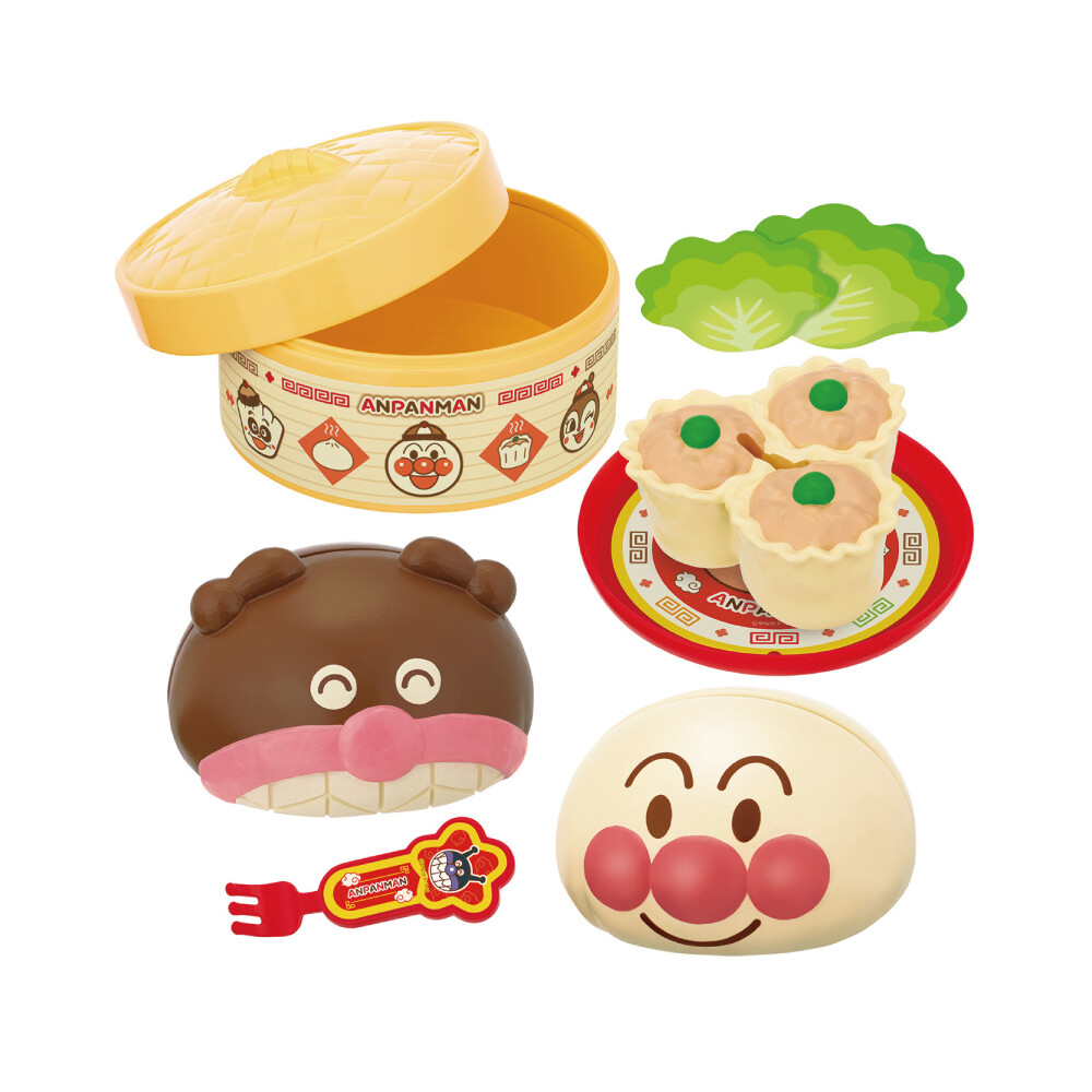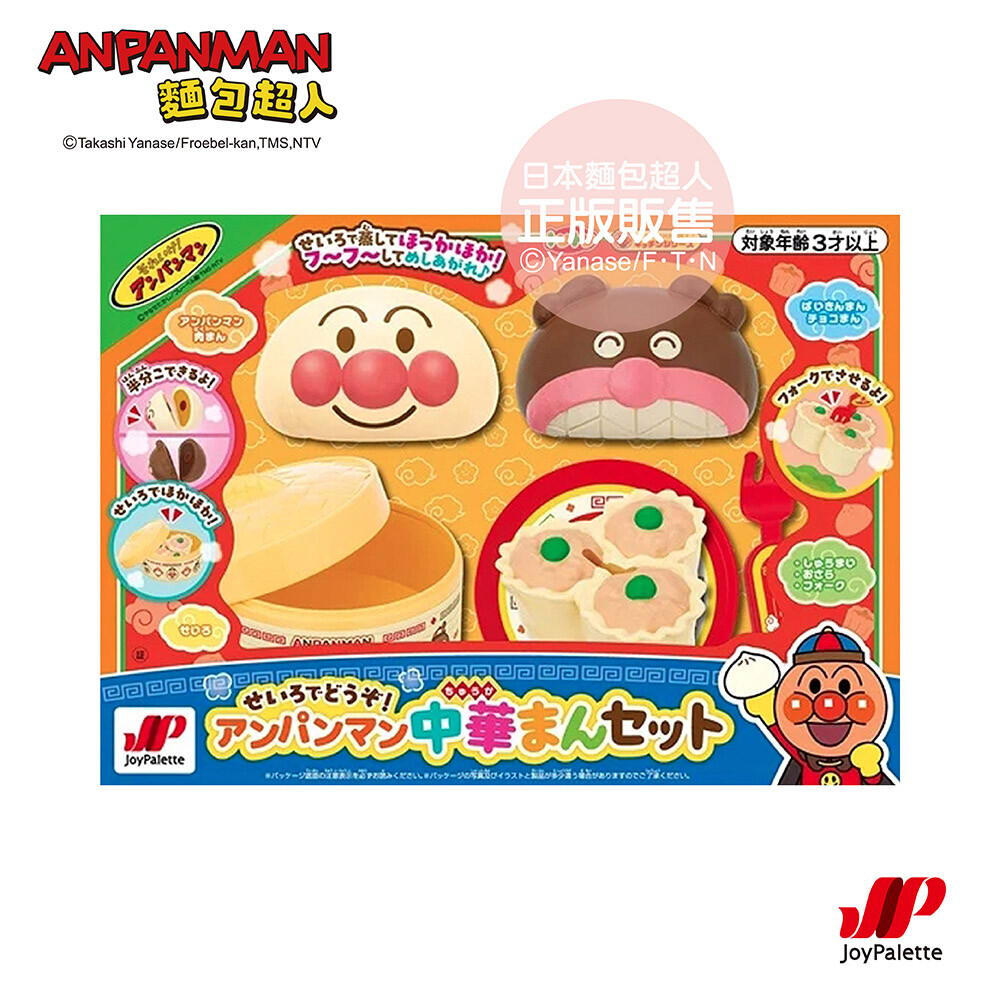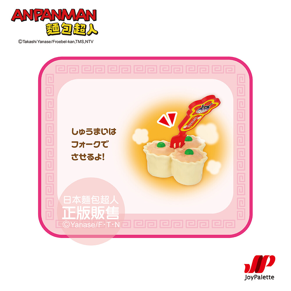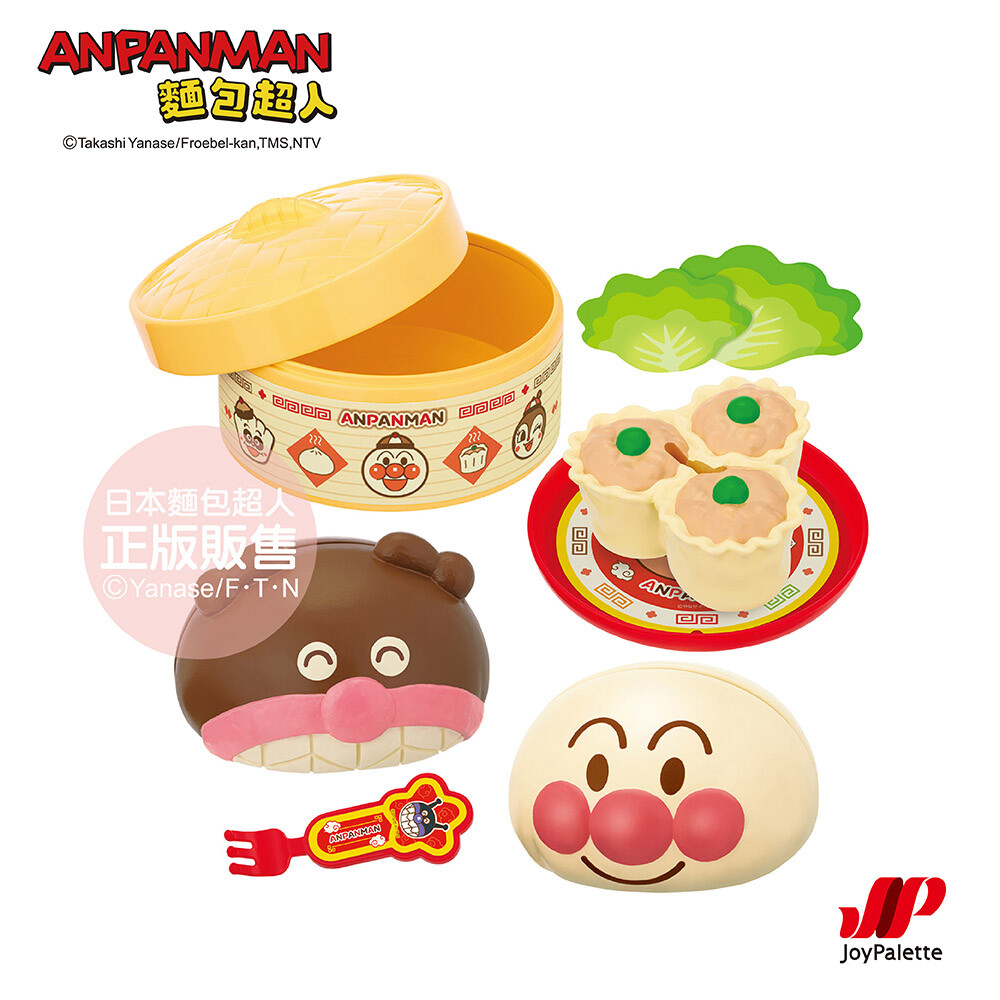組合內容:麵包超人肉包、細菌人巧克力包、燒賣、蒸籠、餐盤、叉子