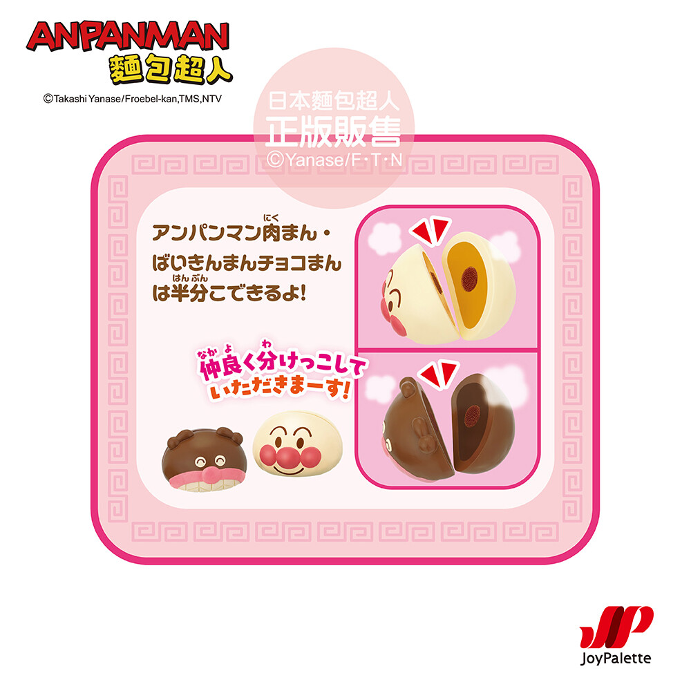 內有可愛的麵包超人肉包,燒賣及細菌人巧克力包等配件,