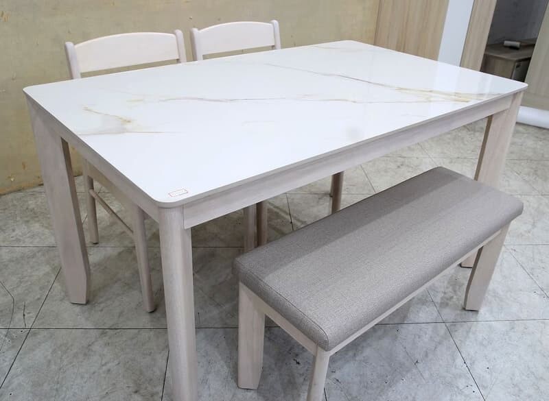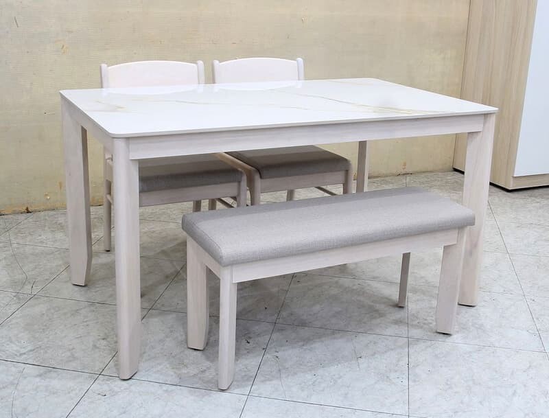 象印北歐風4.5尺洗白色實木岩板餐桌
