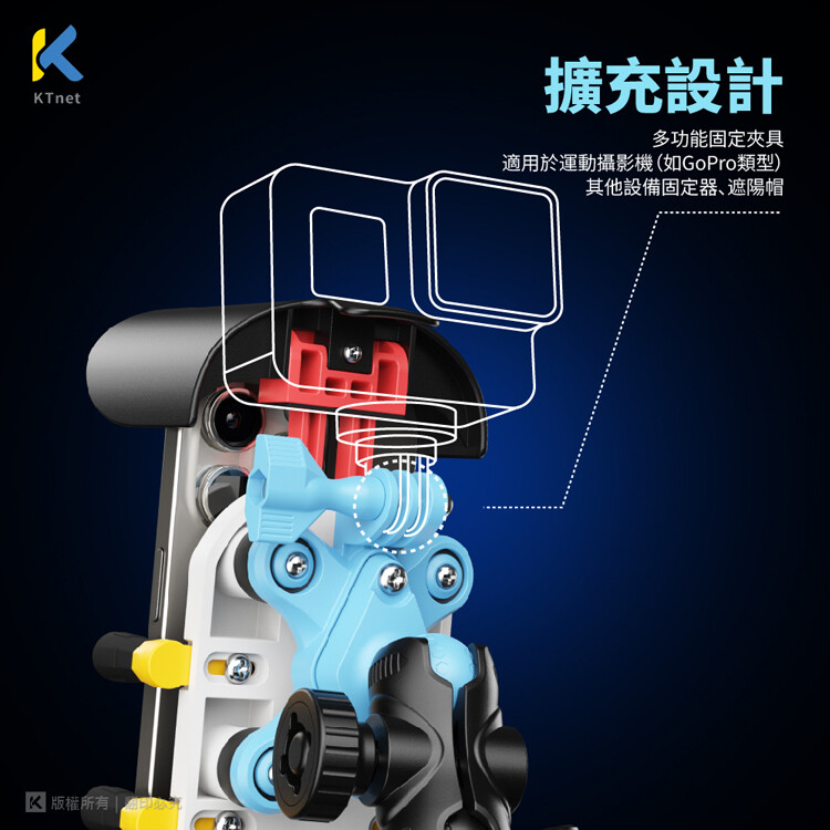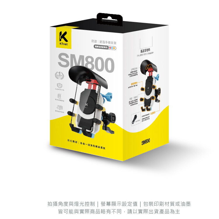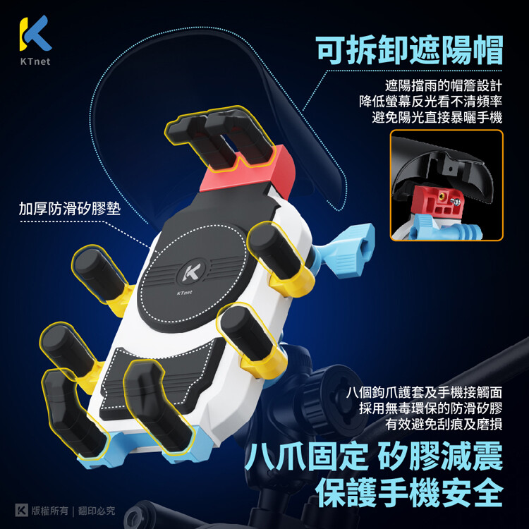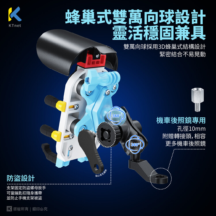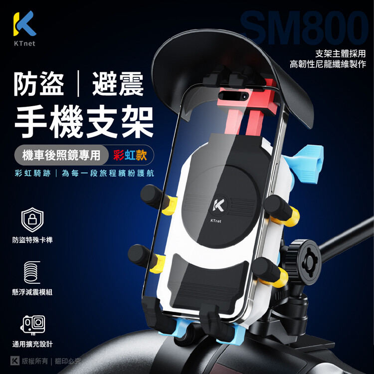 KTnet SM800 夾具型防盜避震器機車手機支架- 後照鏡彩虹款