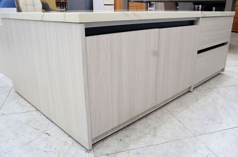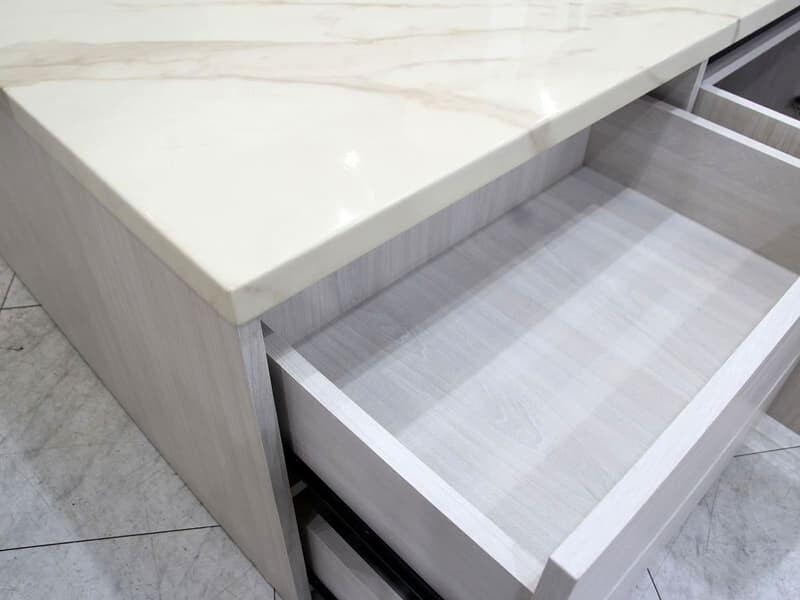 | 材質 | 板材 : 桶身,門板及抽牆皆為木心板材,桌面仿石面密集板材 塗裝 : 桌面噴漆打蠟防水處理 , 其餘洗白色耐磨木皮 五金 : 內建四抽採鋼珠滑軌,門片緩衝後鈕 |