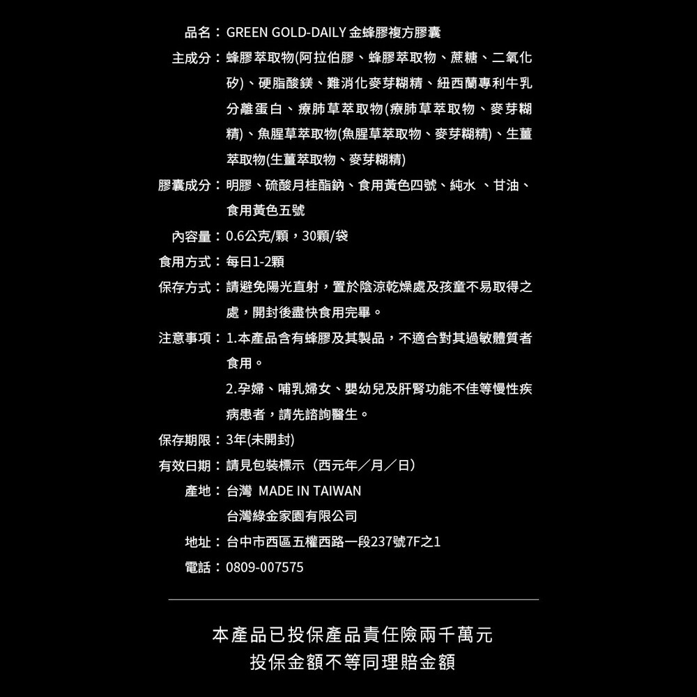 ・本產品含有蜂膠及其製品,不適合對其過敏體質者食用