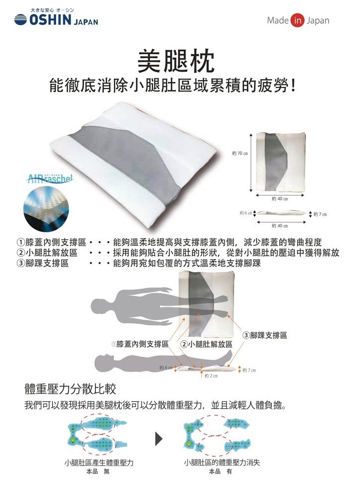 ◆ 採用美腿枕後可以分散體重壓力 並且減輕人體負擔